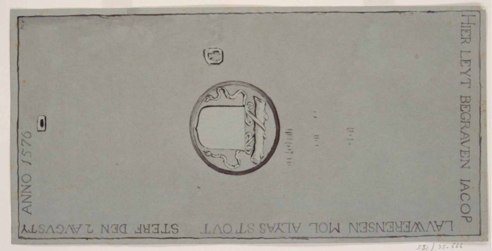 - Grote Kerk - hardstenen zerk van Mol alias Stout. De wapens zijn weggehakt. Boven het wapen vindt men nog flauwe sporen van een vroeger opschrift in Gothische letter.