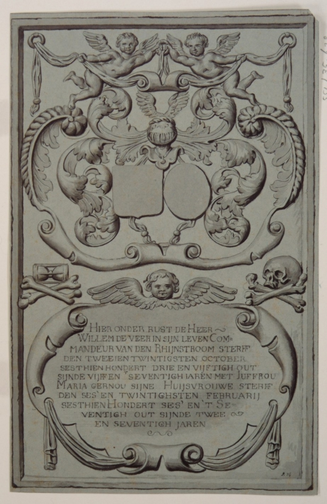 - Grote Kerk - hardstenen zerk van De Veer-Gernou. De wapens zijn weggehakt.