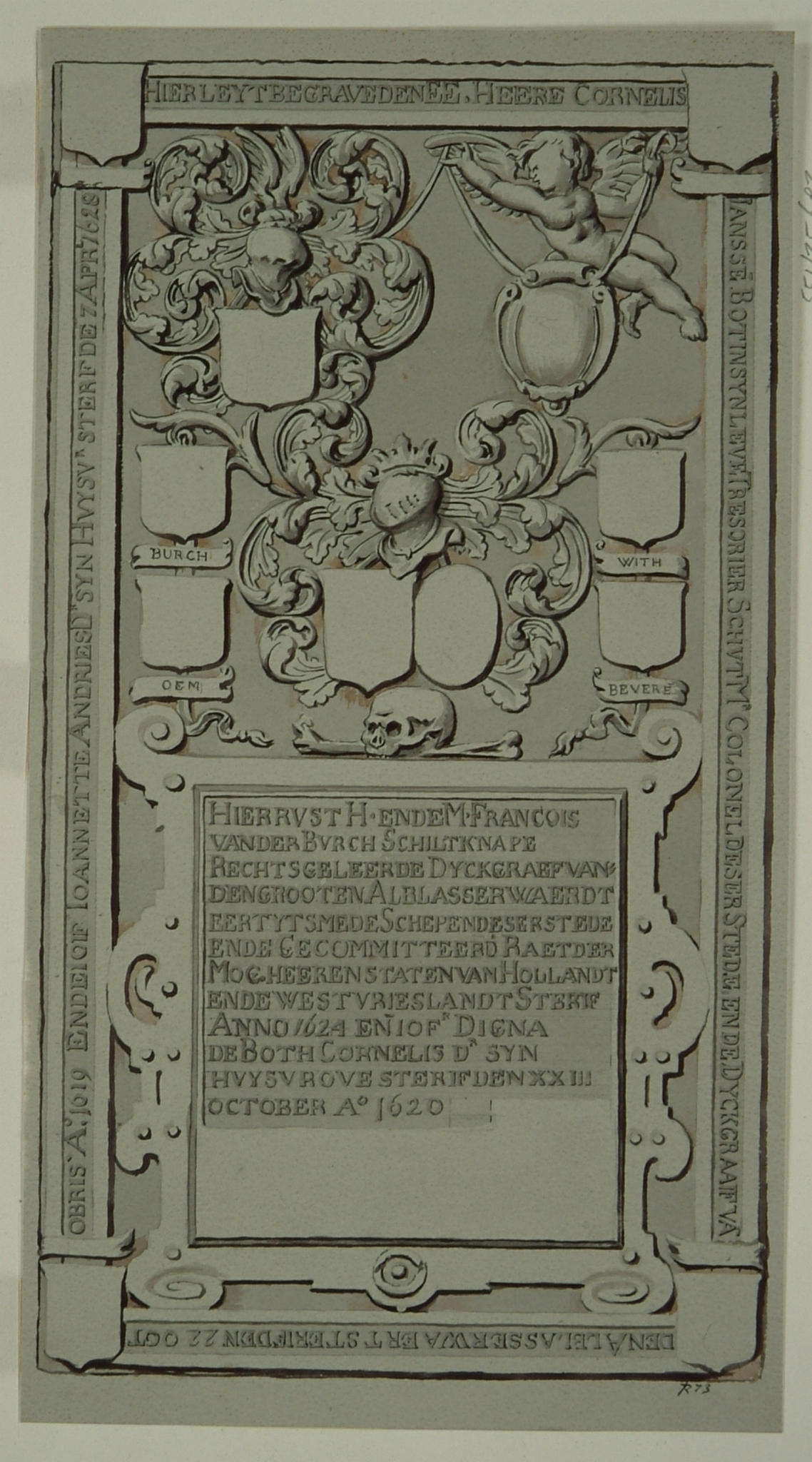 - Grote Kerk - hardstenen zerk van De Both-Joanette Andr.dr (Heymans)-v. der Burch. De wapens zijn weggehakt.