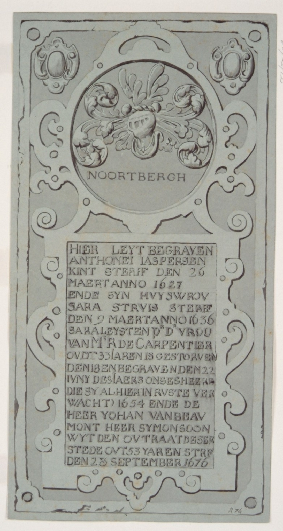 - Grote Kerk - hardstenen zerk van Noortbergh-Kint-Struis-Beaumont. Het wapenschild is geheel weggehakt; de helm en dekkleden zijn gebleven.