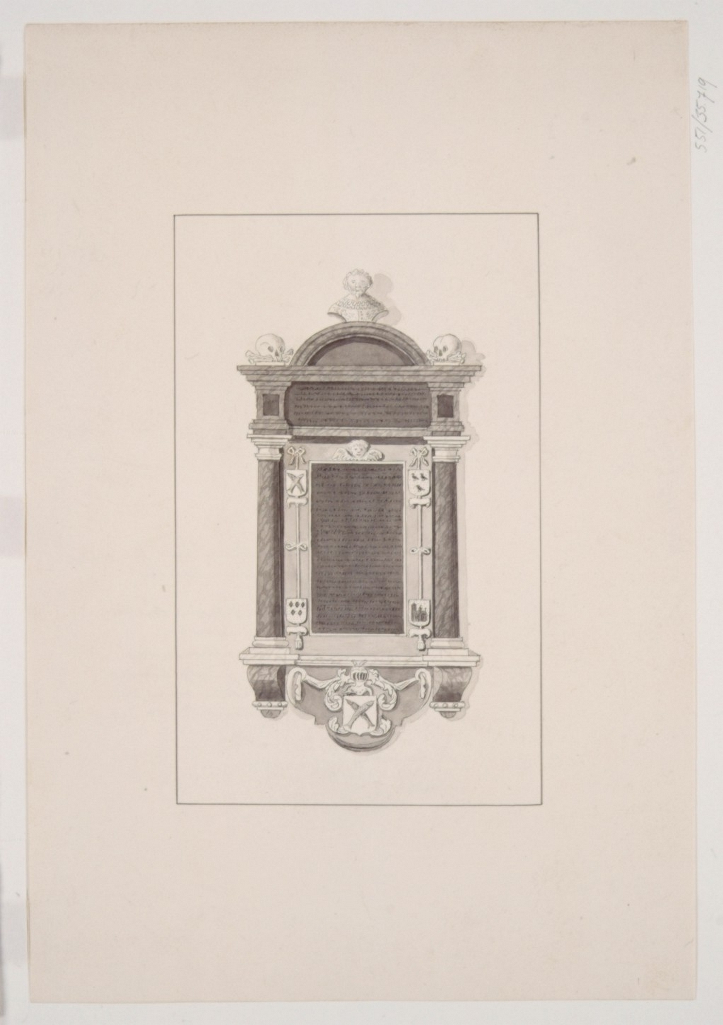 - hxb: 22,1 x 13,2 Naar een tekening van Mr. W. van der Lely 1747, uit diens Versamelinge van Tombes etc. in de Holl. kerken (Kon. Biblioth. Den Haag) Zie Balen blz. 94 en 95, alsmede Dr. Schotel, Een keizerl., stadh. en koninkl. bezoek in de O.L.V. of Grote Kerk te Dordrecht, 1859, blz. 52