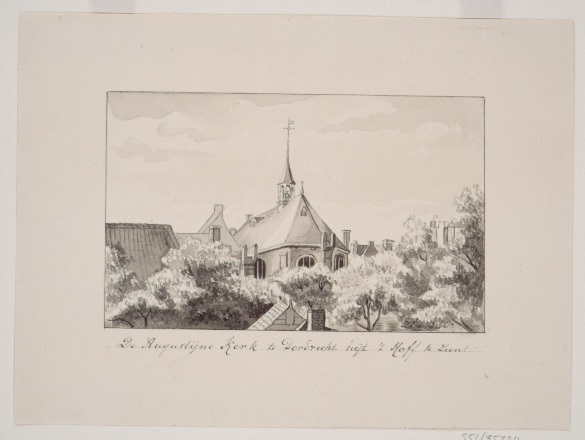 Augustijnerkerk, gezien vanuit 't Hof, omstreeks 1760