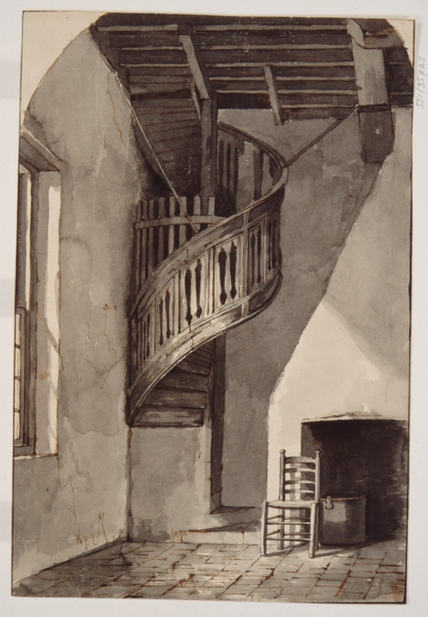 Augustijnerkerk, houten wenteltrap in het vuurhuis, omstreeks 1840