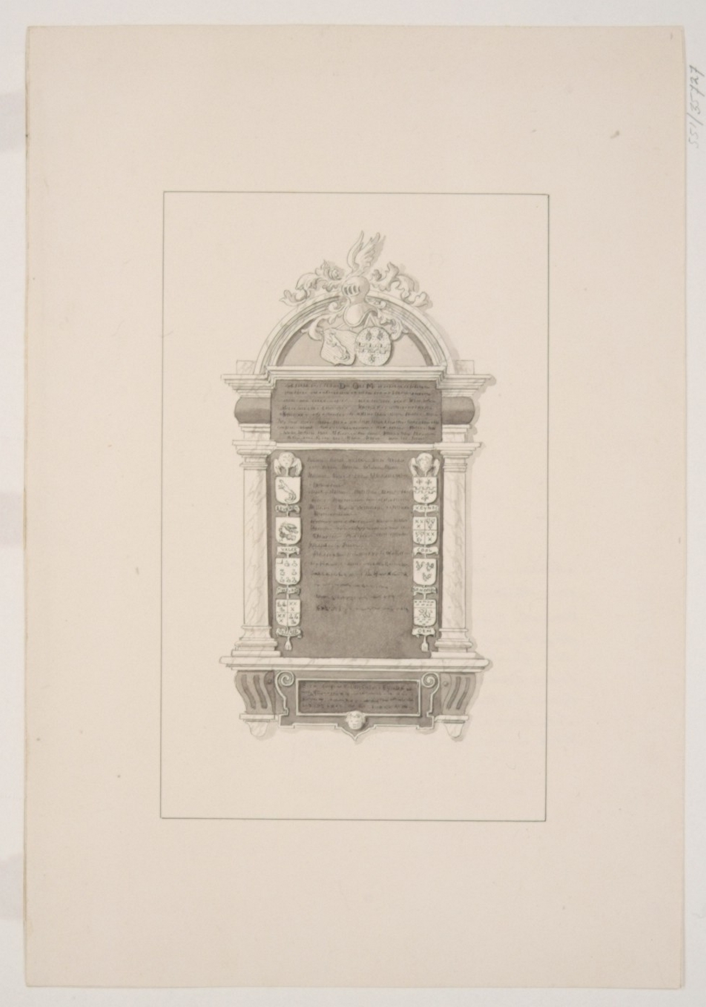 - hxb: 24 x 14,8 cm. Naar een tekening in O.-I.inkt van Mr. W. van der Lely 1747, in diens: Versamelinge van Tombes enz. in de Holl. kerken (Kon. Biblioth. Den Haag). Ook vermeld in: Timareten Verzam. v. Gedenkstukken. Deel III, 1e stuk. bl. 48.