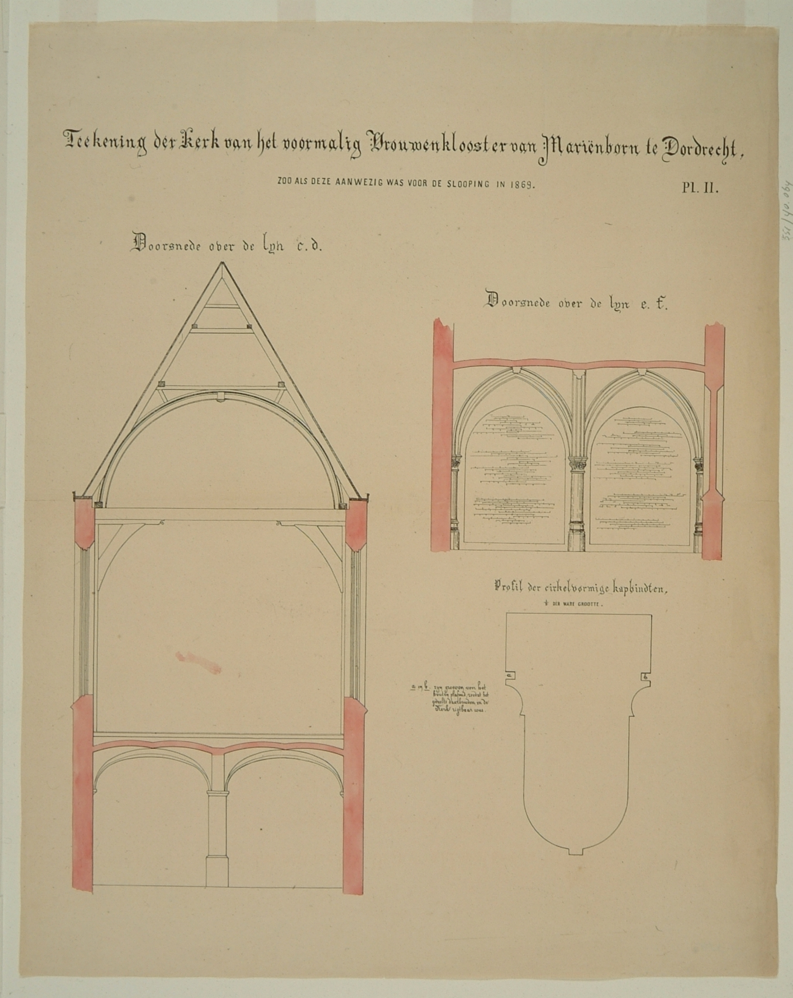 - Opstand en doorsneden van de kerk van het voormalige Mariënbornklooster vóór de sloop in 1869.