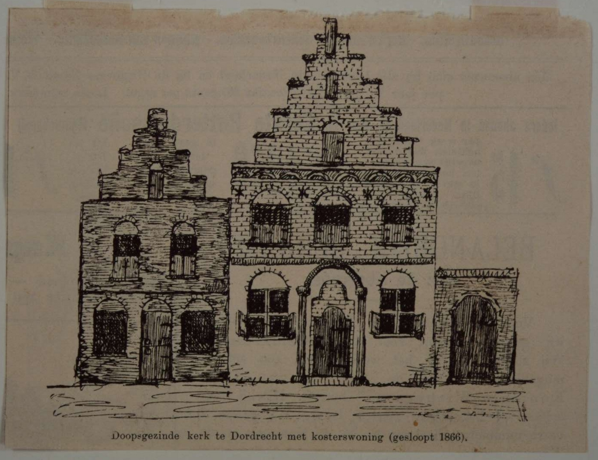 Oude Doopsgezinde kerk met kosterswoning, 1e helft 17e eeuw. Gesloopt 1866.