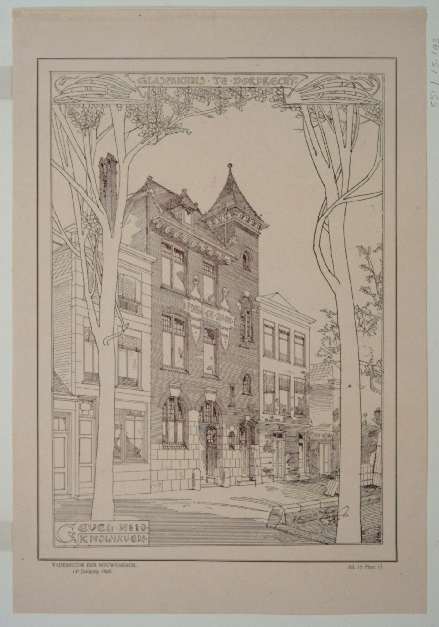 Uit: Vademecum der bouwvakken, 13e jaargang 1898, aflevering 17, plaat 17; afmetingen: Hg. 31.5, br. 22.5. c.