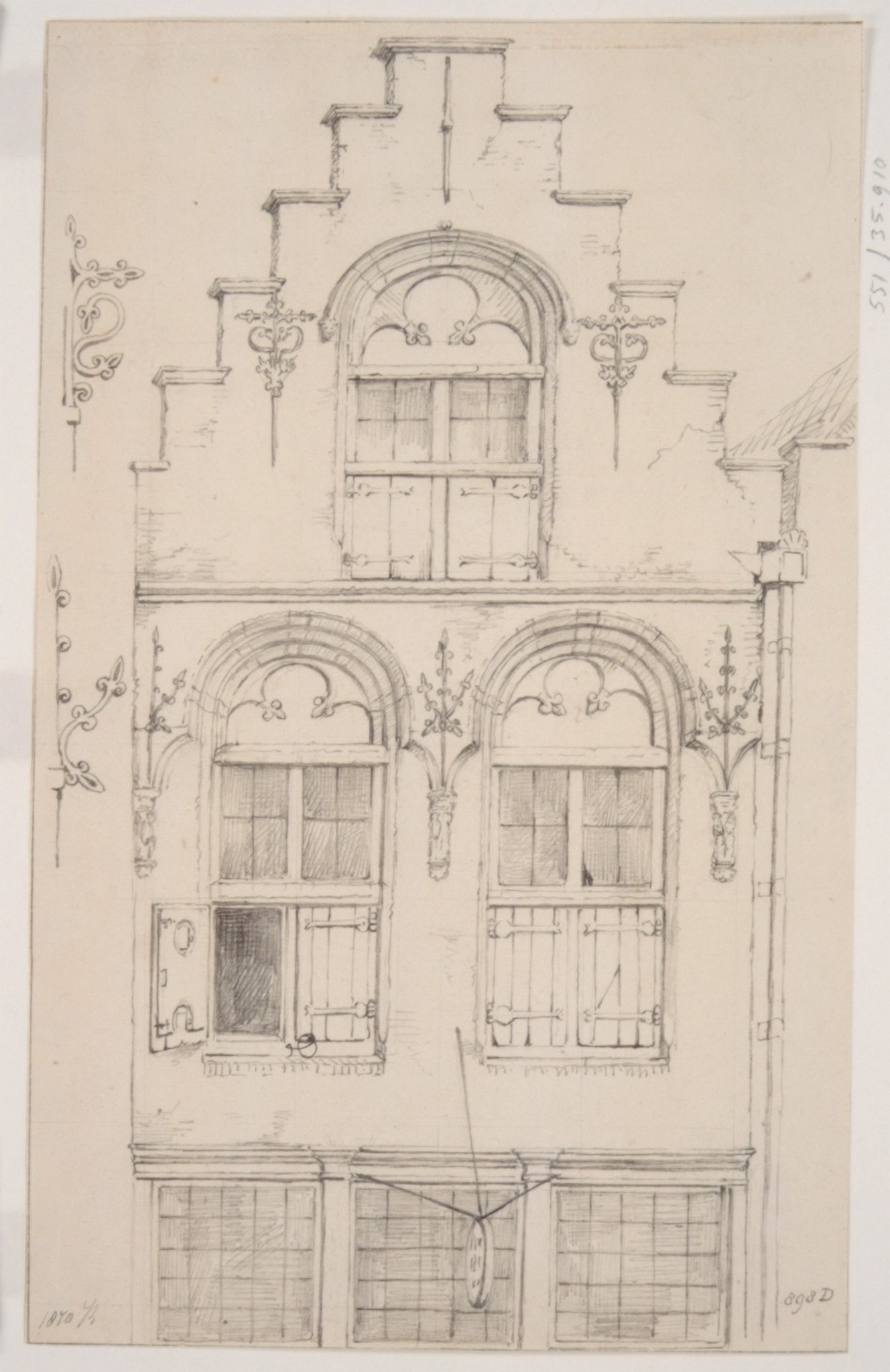 Voorstraat 250; bovengevel 2e helft XVIe eeuw van huis de Rozijnkorf