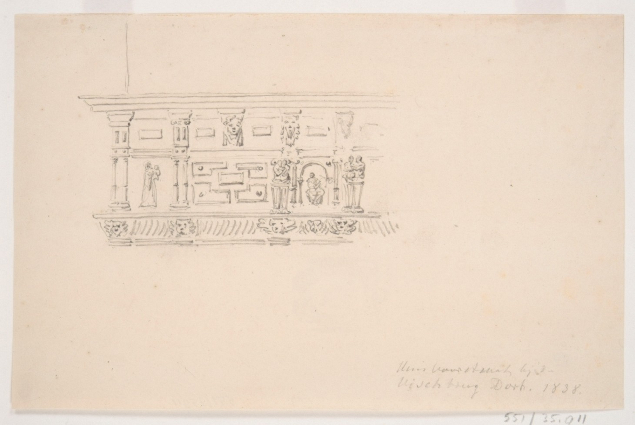 Voorstraat bij de Visbrug; eikenhouten schoorsteenkap, begin XVIIe eeuw