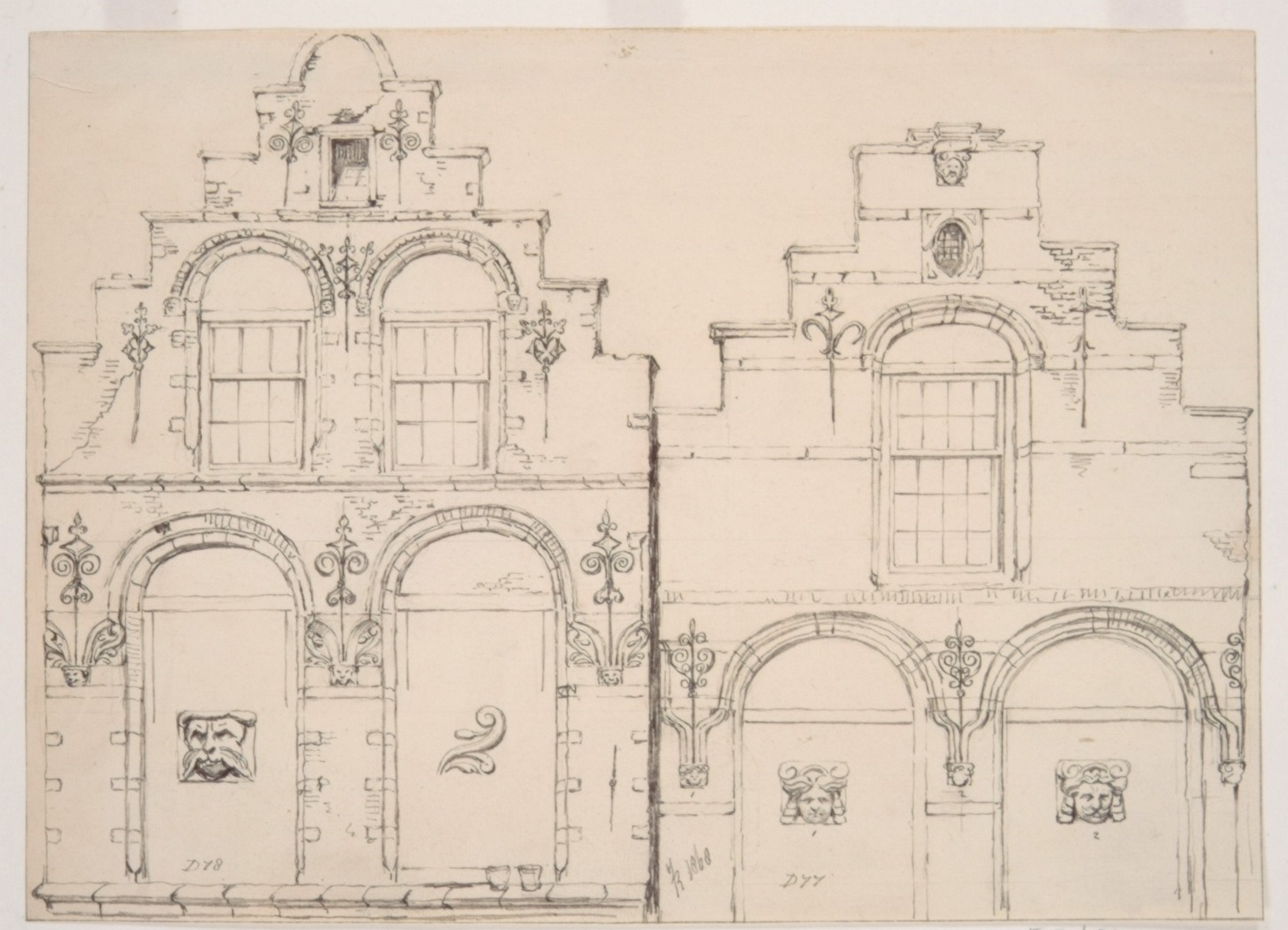Voorstraat 383 en 381; bovengevels, eind XVIe eeuw