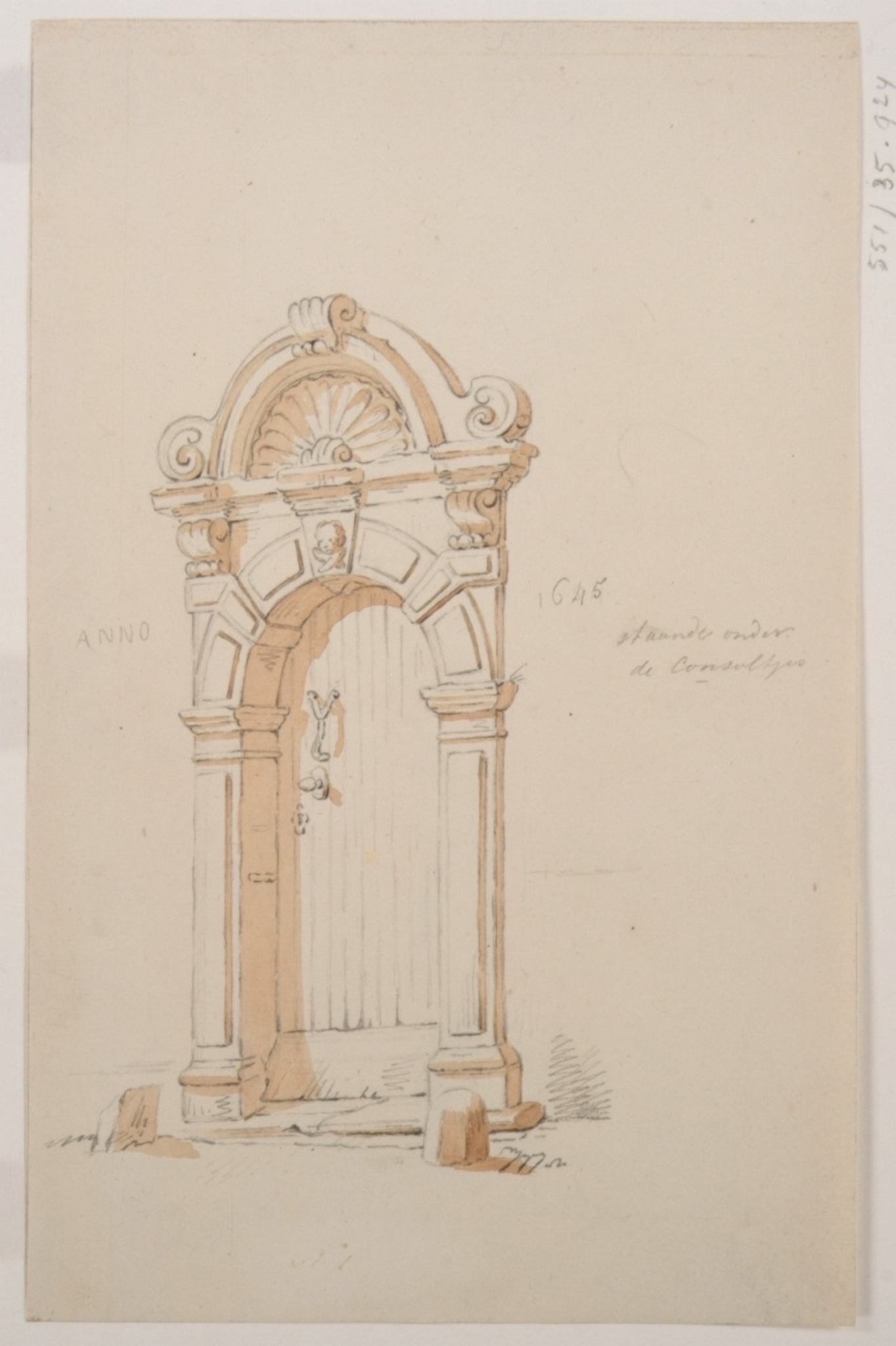 tekening in potlood met umber opgewassen