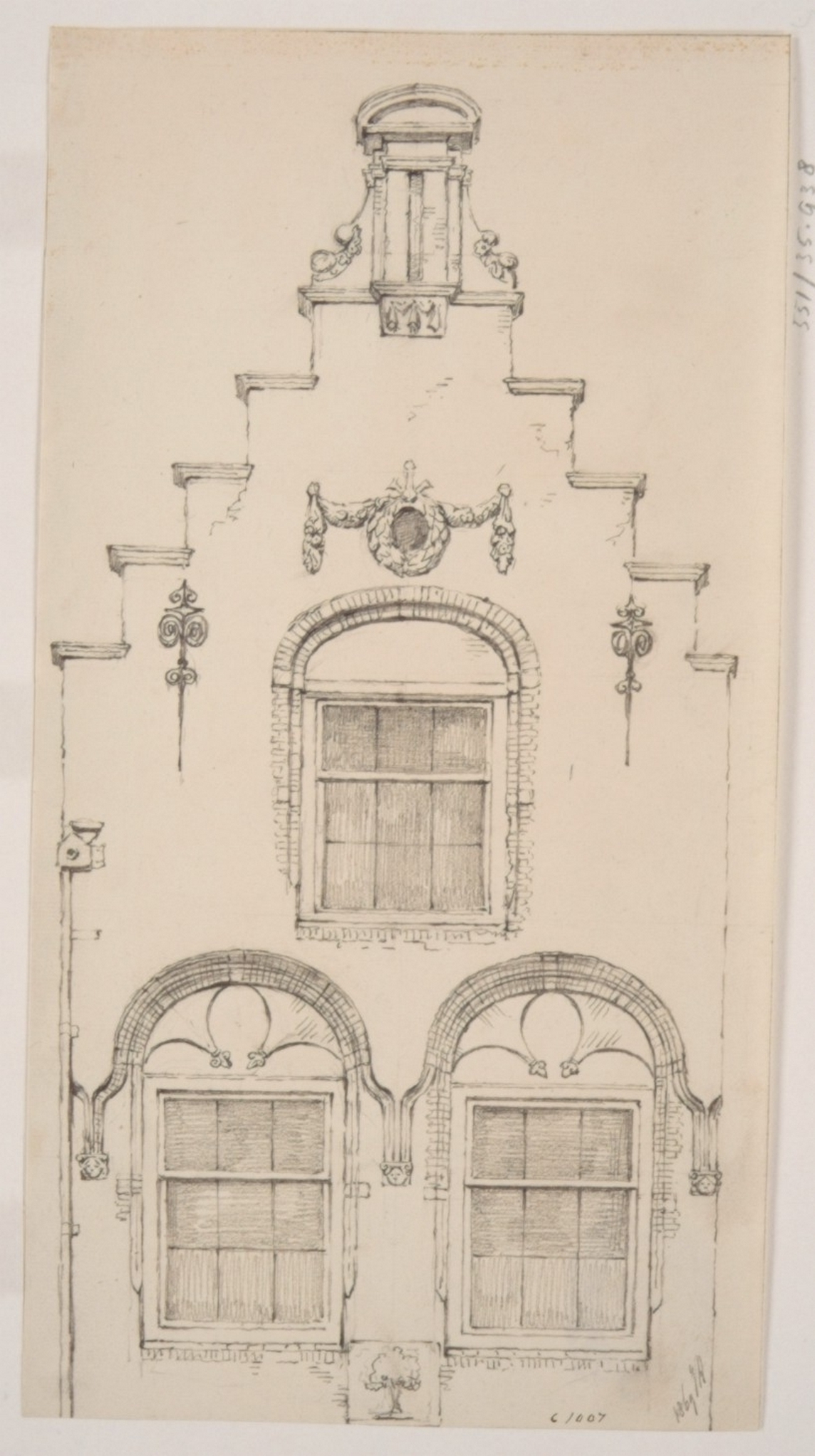Steegoversloot 58; bovengevel van huis In den Eyckenboom, 1e helft XVIIe eeuw.