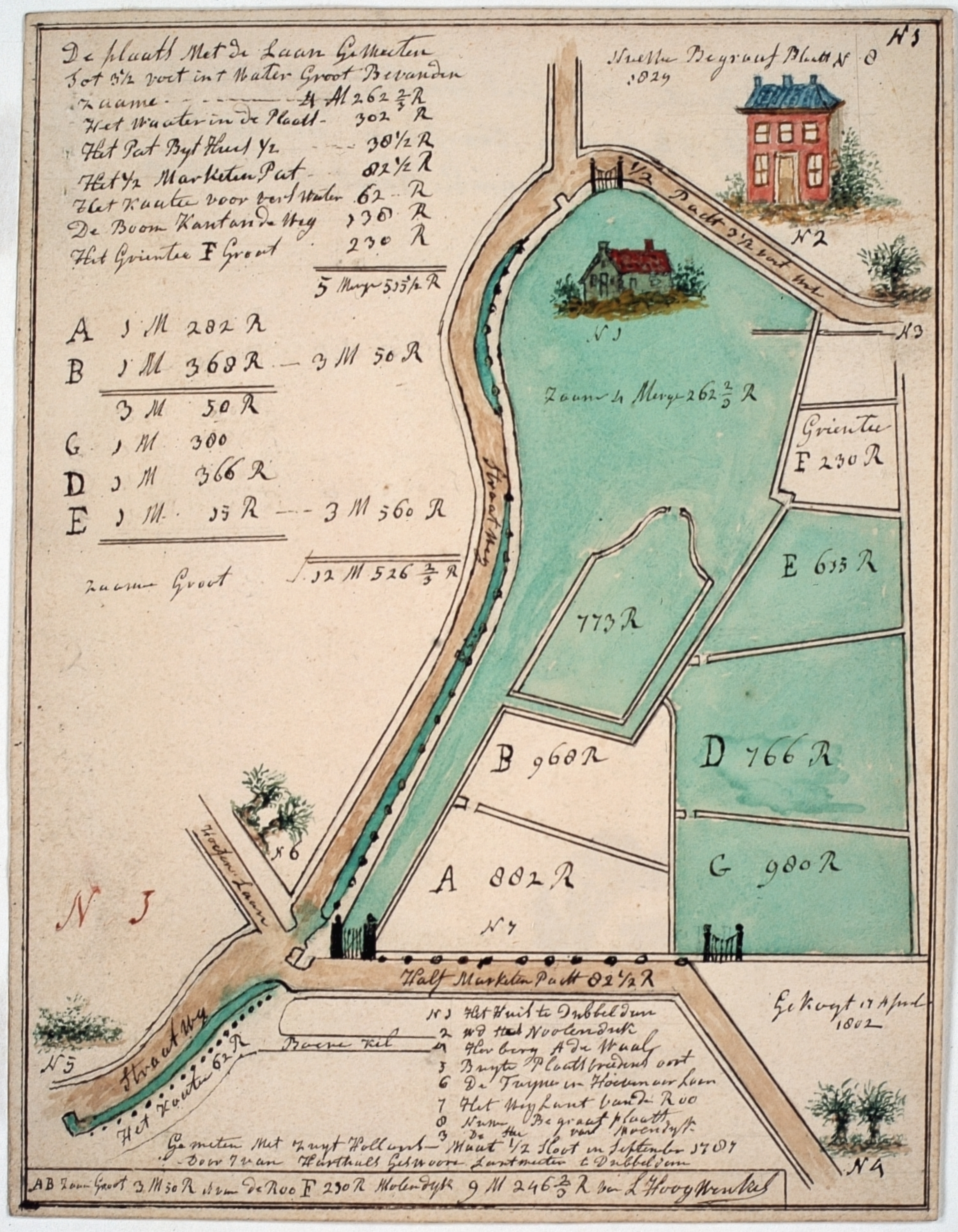 Dubbeldamseweg; Huis te Dubbeldam. Kaart van huis en landerijen.