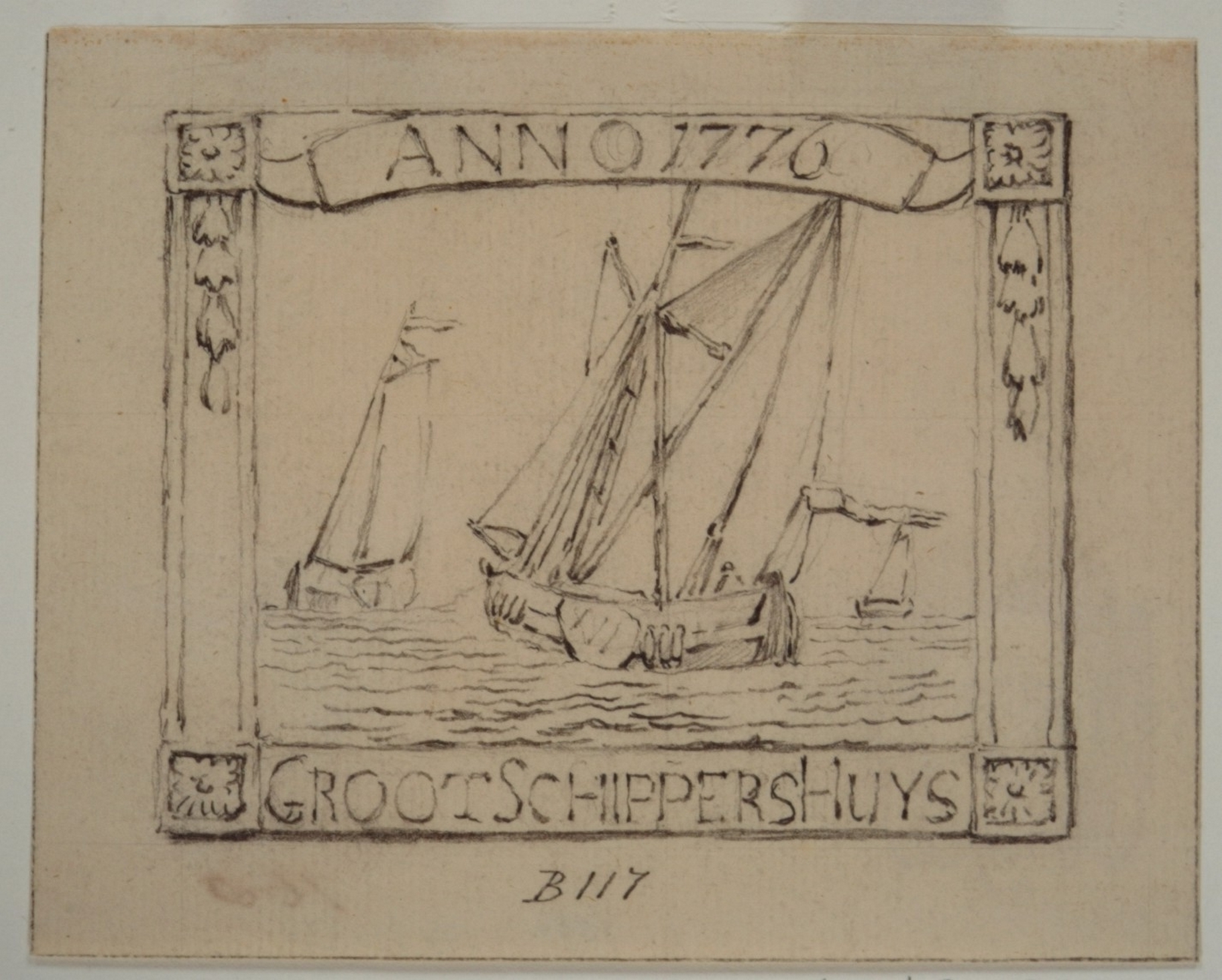 - Gevelsteen van het gildehuis van het groot schippersgilde, Wijnstraat 11/13, met het jaartal 1776