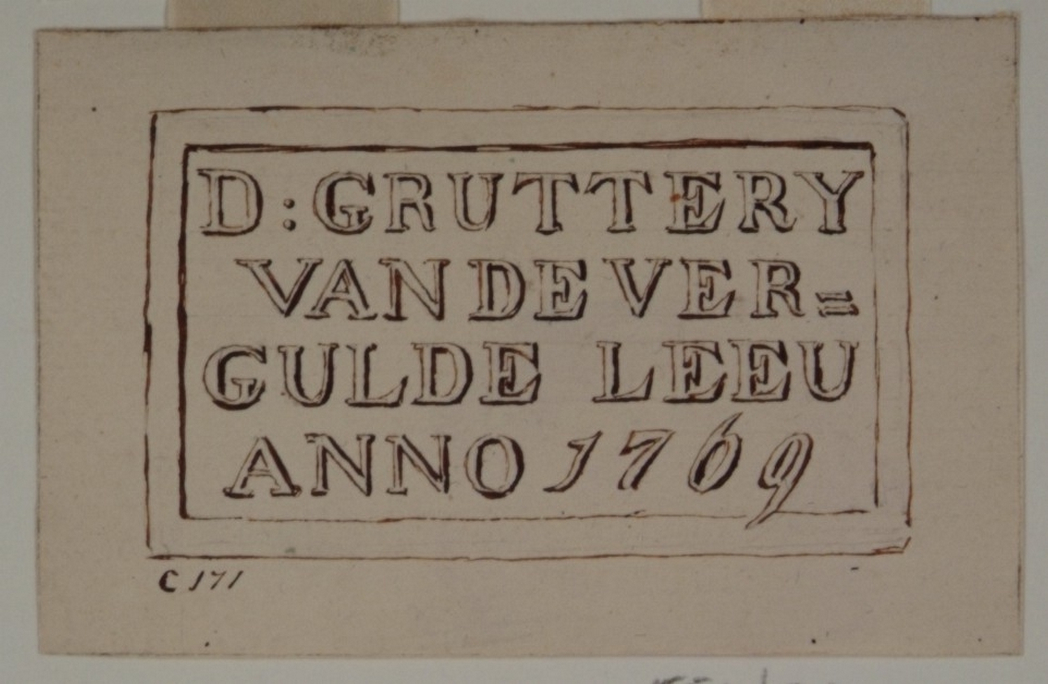- Gevelsteen in de achtergevel van het pand Riedijk 20, met de tekst: D: GRUTTERY VAN DE VERGULDE LEEU ANNO 1769
