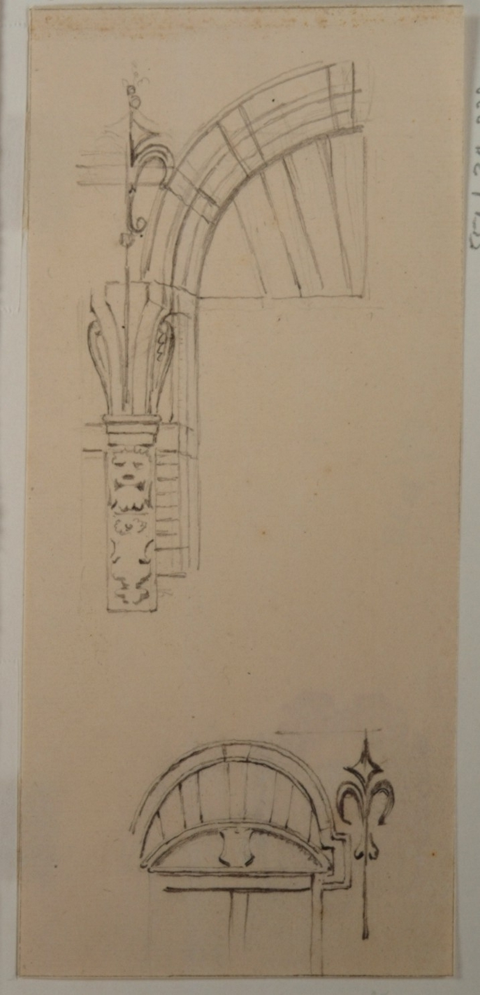 Schetsen van een ontlastingsboog met console van een onbekend huis