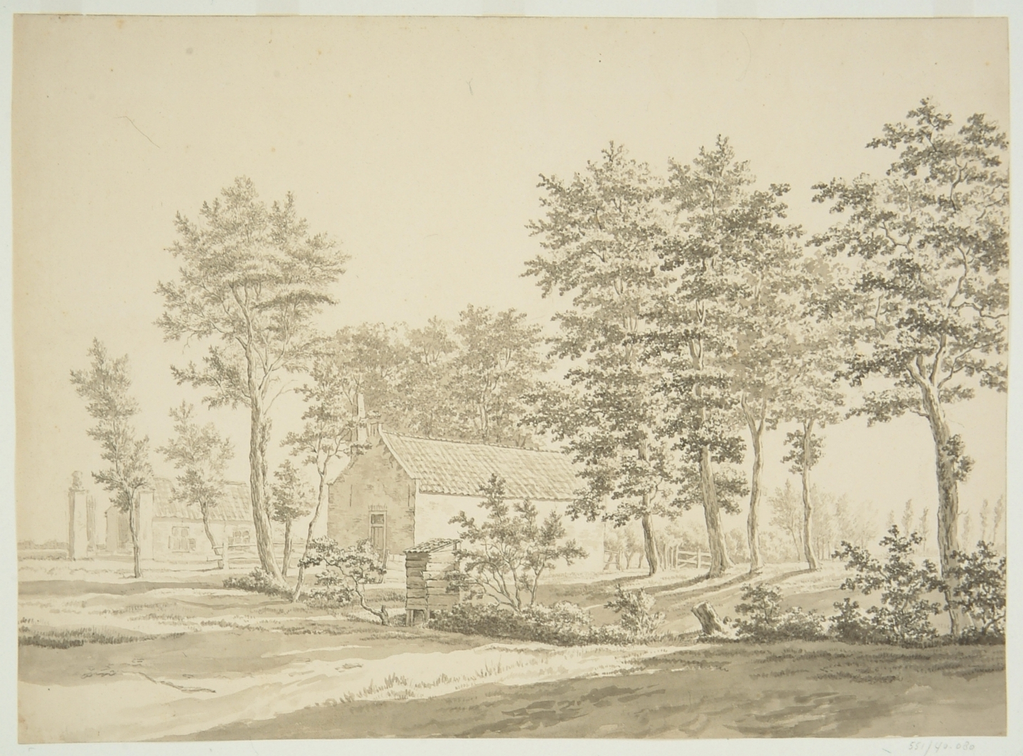 Gezicht op de achterzijde der herberg en uitspanning Krispijn aan het einde van de …