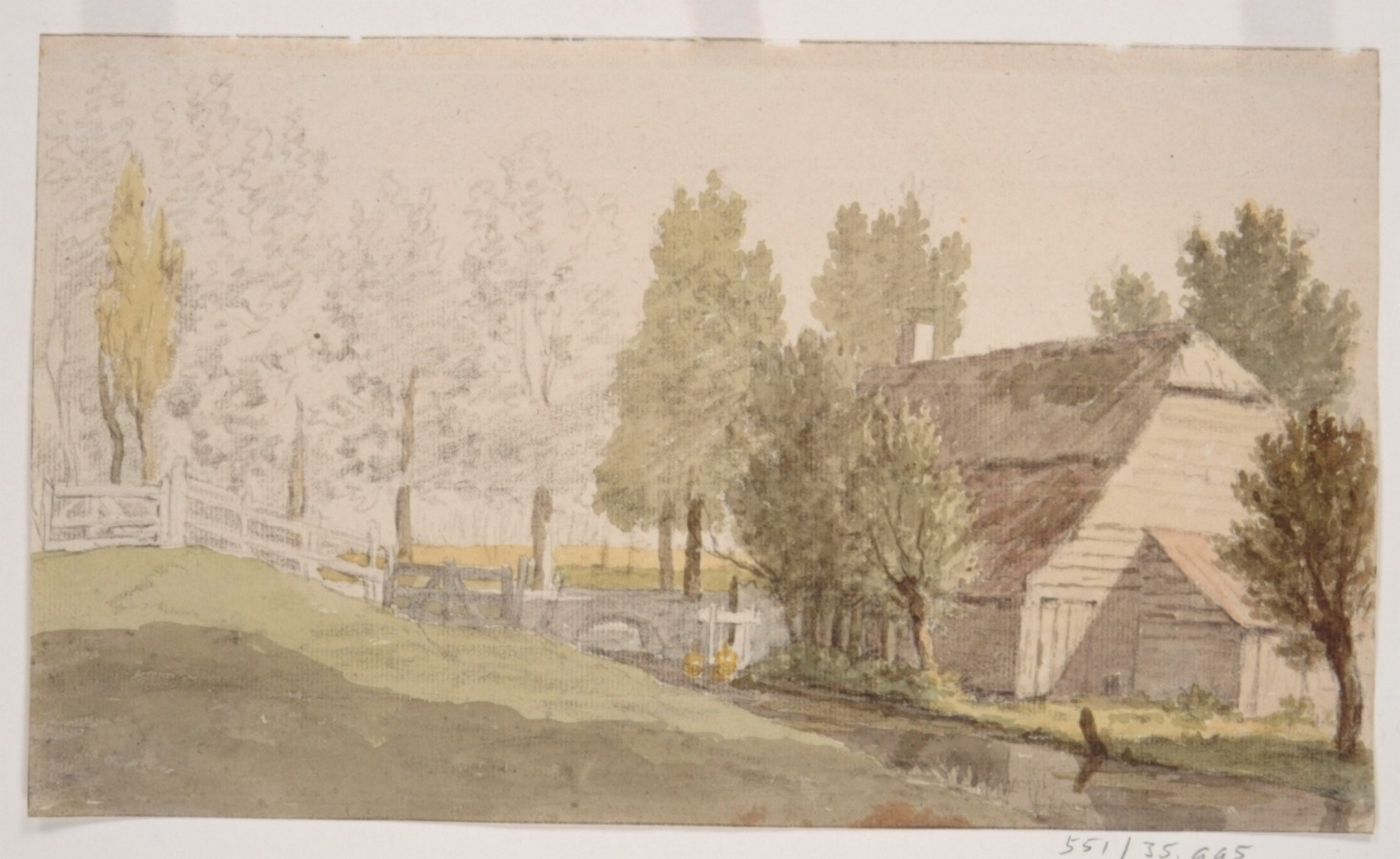 Krommedijk, begin 19e eeuw; ter hoogte van de aansluiting op de Dubbeldamseweg, tussen …