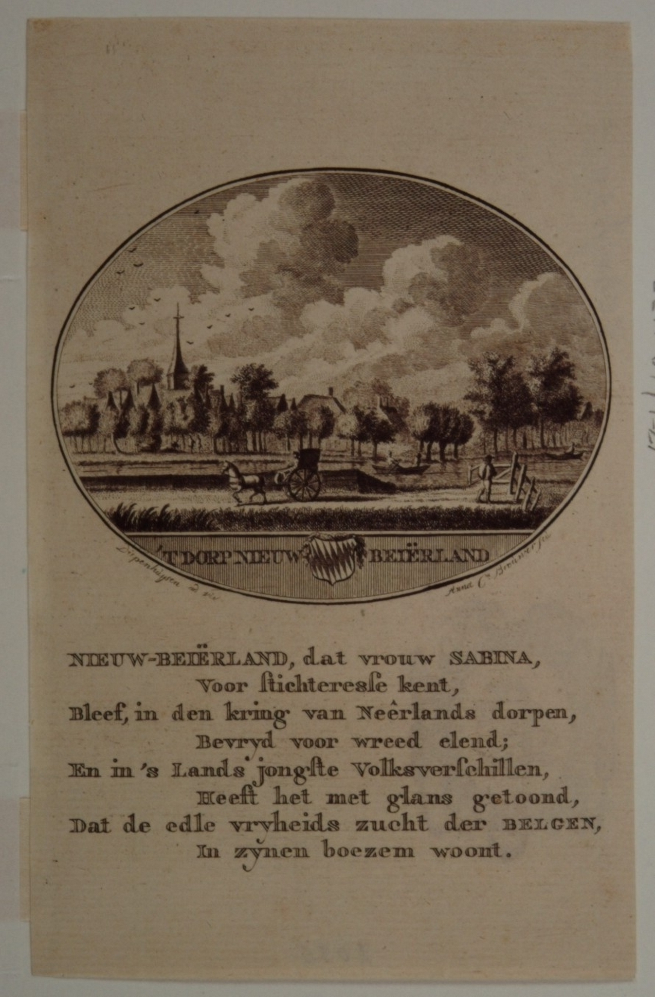 hxb: 7,5 x 9,7 cm. Naar de tekening van J. van Diepenhuysen. In ovaal met wapen en 4-regelig versje Uit: ' De Nederl. Stad- en Dorp-Beschrijver' , L. van Oleffen. I d. Amst. 1793
