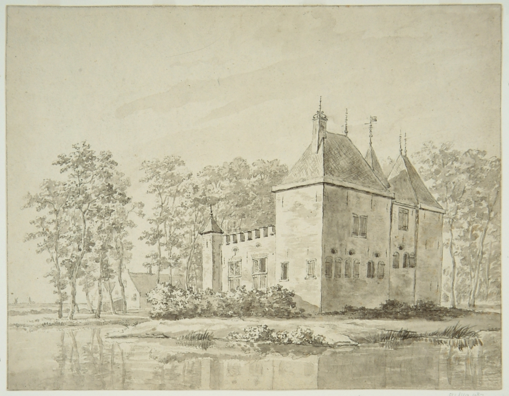 - Rechterzijde en achterkant van het kasteel Develsteijn in de Zwijndrechtse Waard onder de gemeente Groote Lindten.
