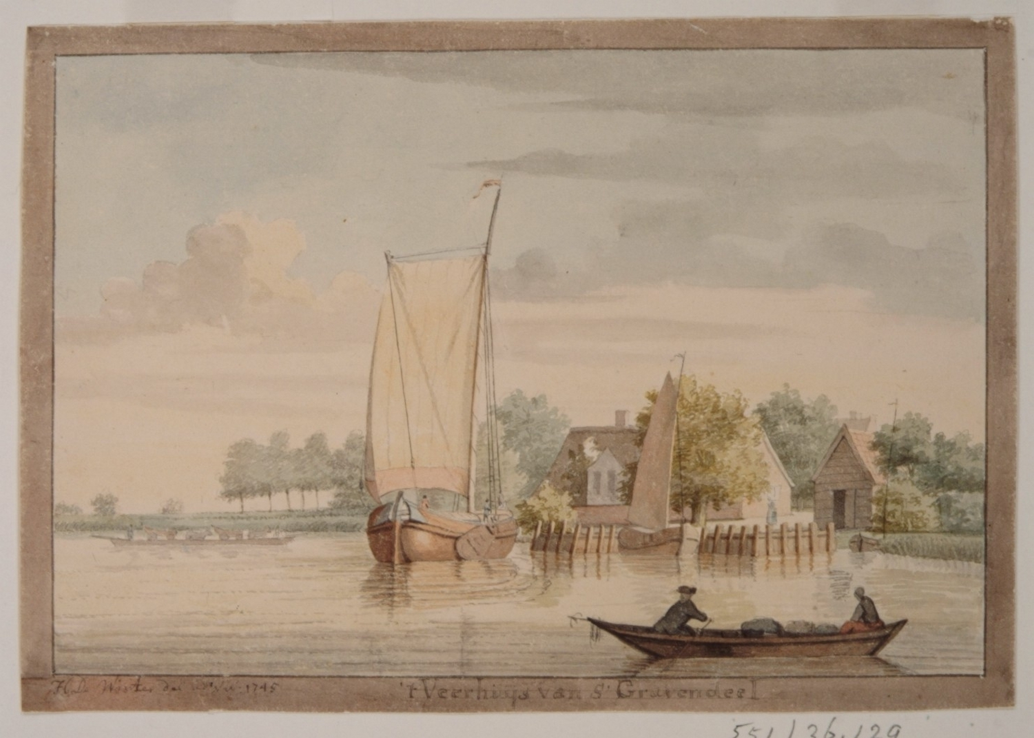 - 's Gravendeel, anno 1745. 't Veerhuys gezien vanaf het Mallegat
