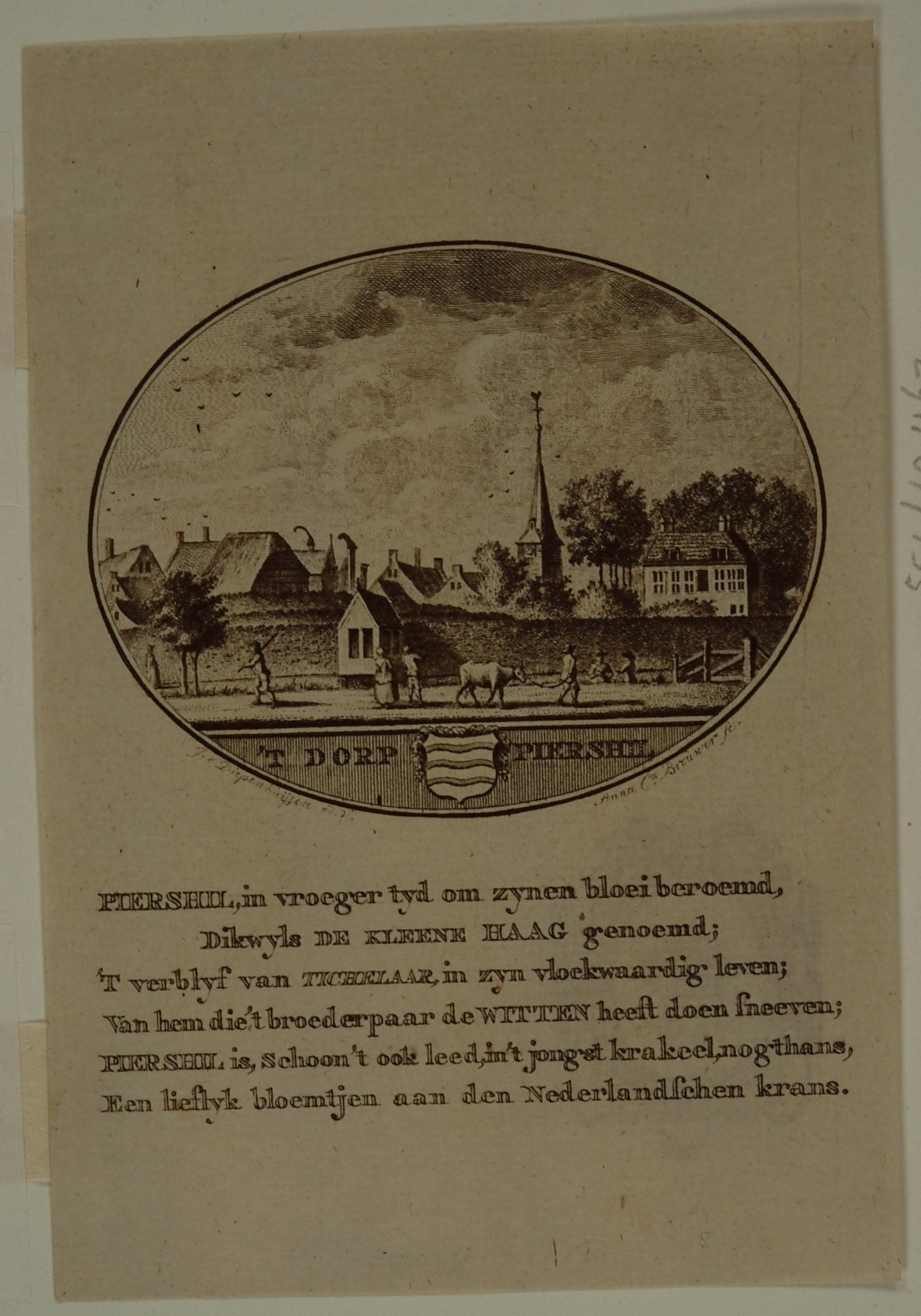 hxb: 7,8 x 9,8 cm. Naar een tekening van J. van Diepenhuysen. In ovaal met wapen en 6-regelig vers. Uit: 'De Ned. Stad- en Dorp-Beschrijver', L. van Ollefen. I Deel. Amst 1793