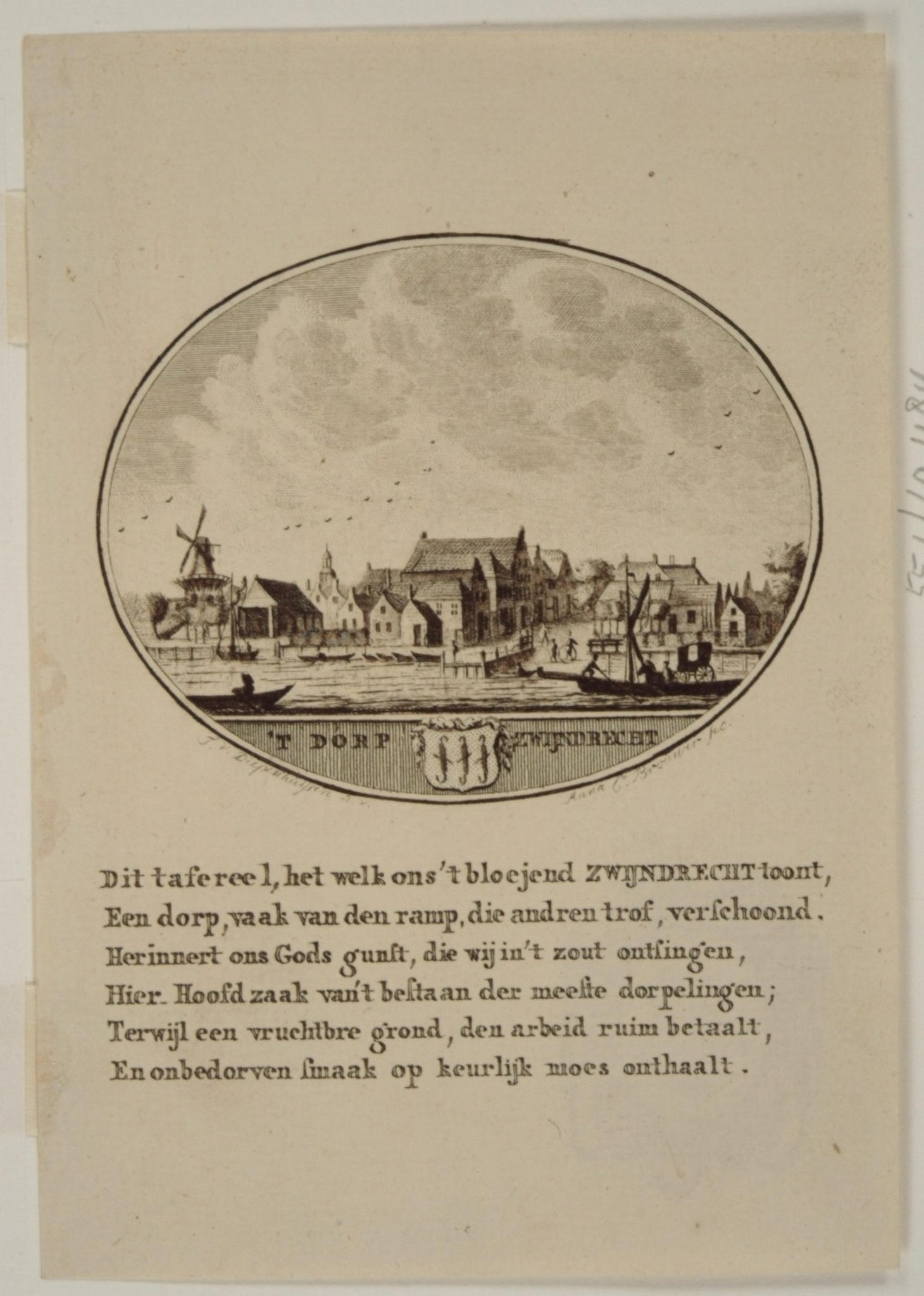 hxb: 7,8 x 9,8 cm. Naar de tekening van J. van Diepenhuysen. In ovaal met wapen en 8-regelig vers. Uit: De Nederl. Stad- en Dorp-Beschrijver, L. van Ollefen. Amst. 1793