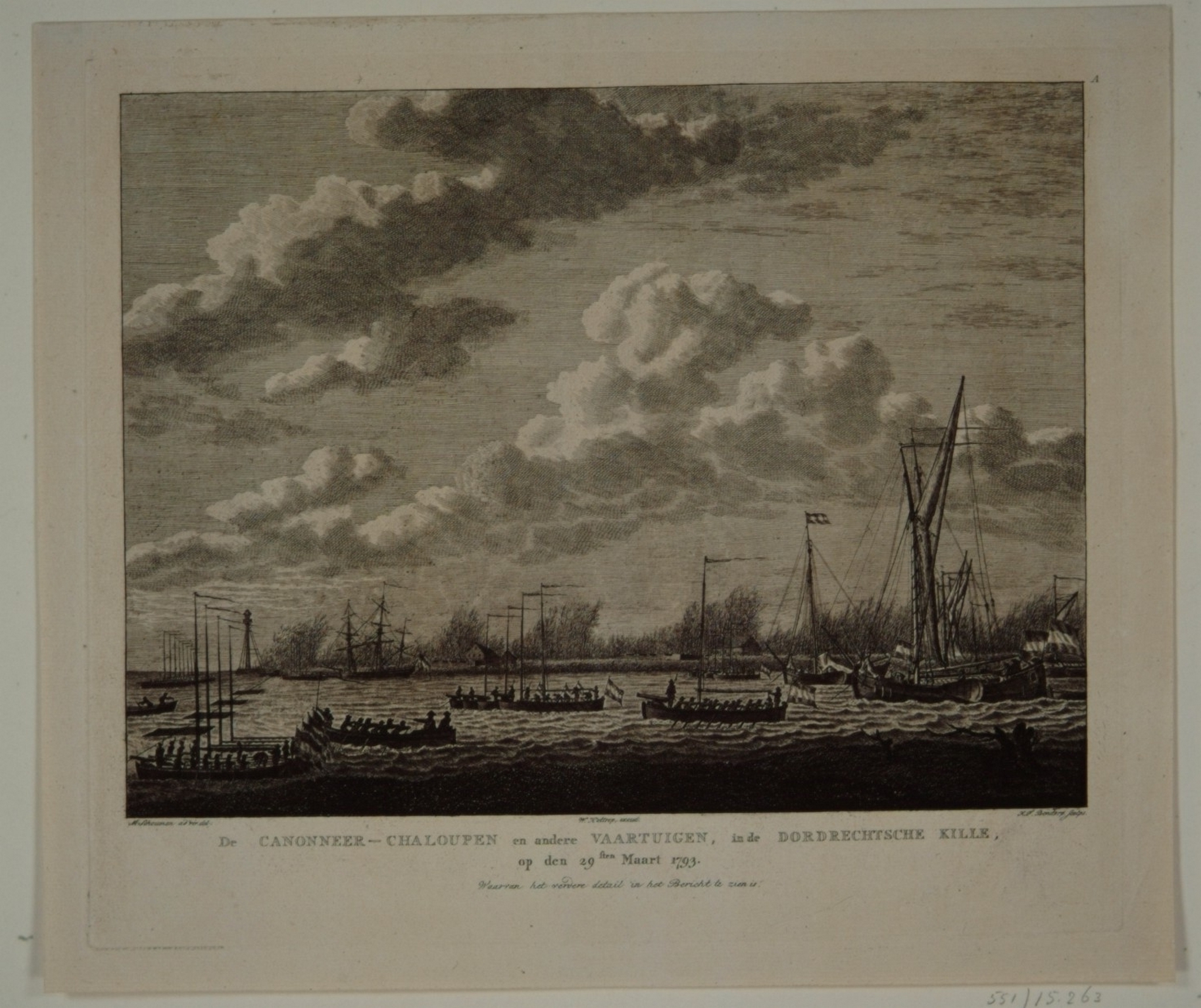 - De afsluiting van de mond der Dordtsche Kil met vlotten en gewapende sloepen op 29 maart 1793 als defensiemaatregel tegen de Fransen.