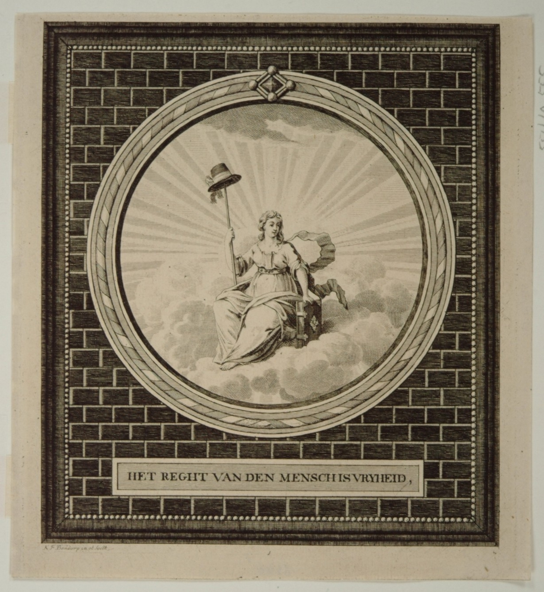 Zinneprent: Vrijheid, Gelijkheid en Broederschap, 31 januari 1795. "Het regt van den mensch is Vrijheid"
