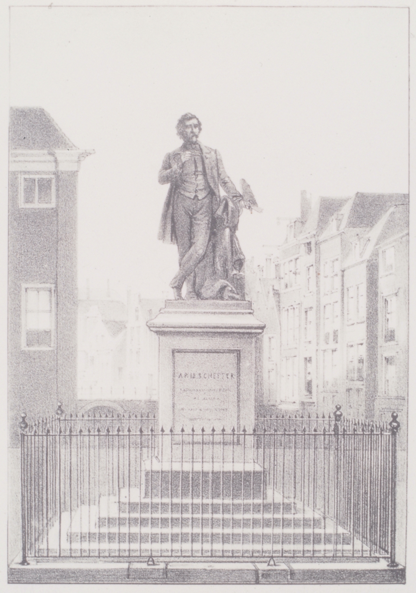 Standbeeld van Ary Scheffer op het Scheffersplein, kort na de onthulling van 8 mei 1862