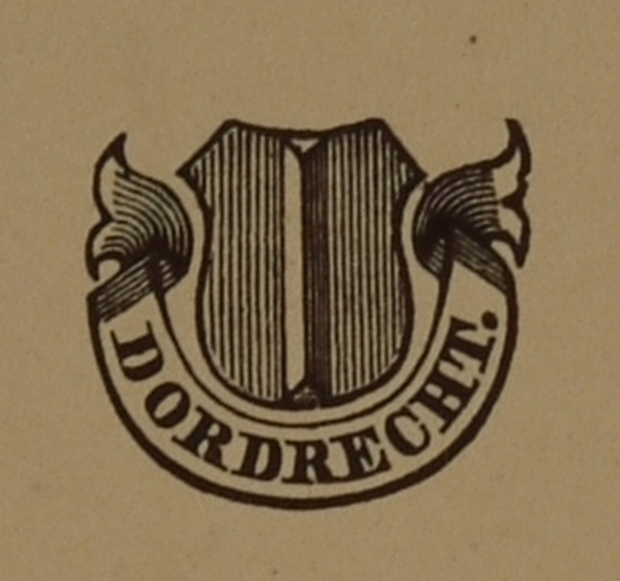 - Het wapen van Dordrecht, zonder tenanten, met onderschrift Dordrecht.