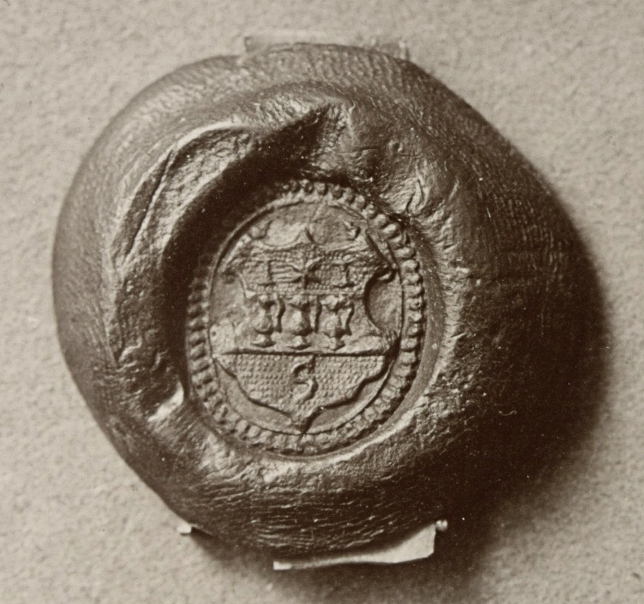 - Tegenzegel van Stoop, S. Jan Jacobszoon Het voorgaande wapen met bijvoeging der letters I, I in het schildhoofd en S in de punt