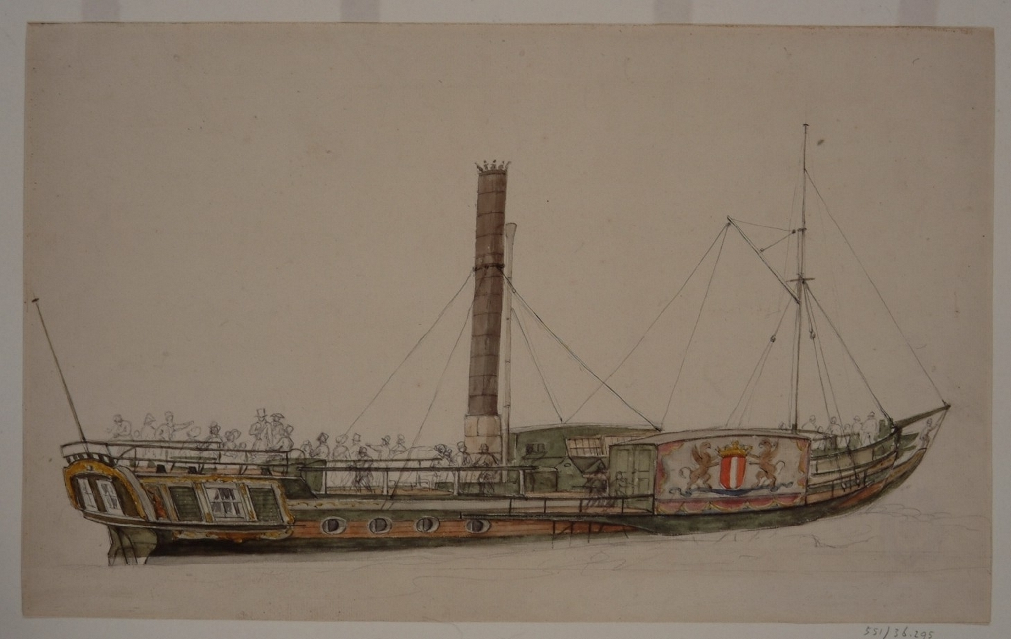 - hxb: 34 x 55 cm. Deze eerste boot, de Prins Frederik, is in de vaart gebracht in 1825. Zij was gebouwd op de werf van Jan Schouten te Dordrecht, werd 2 april 1825 te water gelaten en droeg oorspronkelijk de naam De Vereeniging. (Dordr. Courant van 5 April 1825). In de lijst van op de werf van Schouten gebouwde schepen, wordt zij Prins Frederik genoemd. Volgens de Dordr. Courant van 28 juli 1825 voeren toen reeds tussen Rotterdam en 's-Gravendeel de stoomboot De Eendragt en het stoomjacht Prinses Marianne.