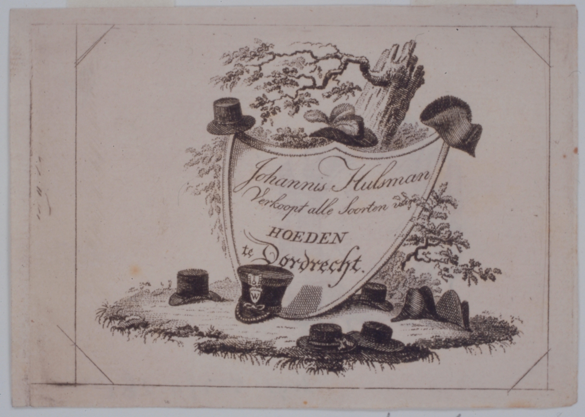 Adreskaart van de hoedenwinkel van Johannis Hulsman