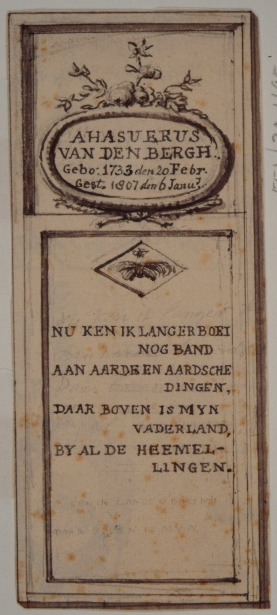 - Afmetingen: Hg. 15.5, br. 6.5 c.; Ahasverus van den Berg werd geboren in Dordrecht in 1733 en overleed in Arnhem in 1807. Hij was hervormd predikant en lid van de Commissie voor de Nieuwe Psalmberijming in 1772