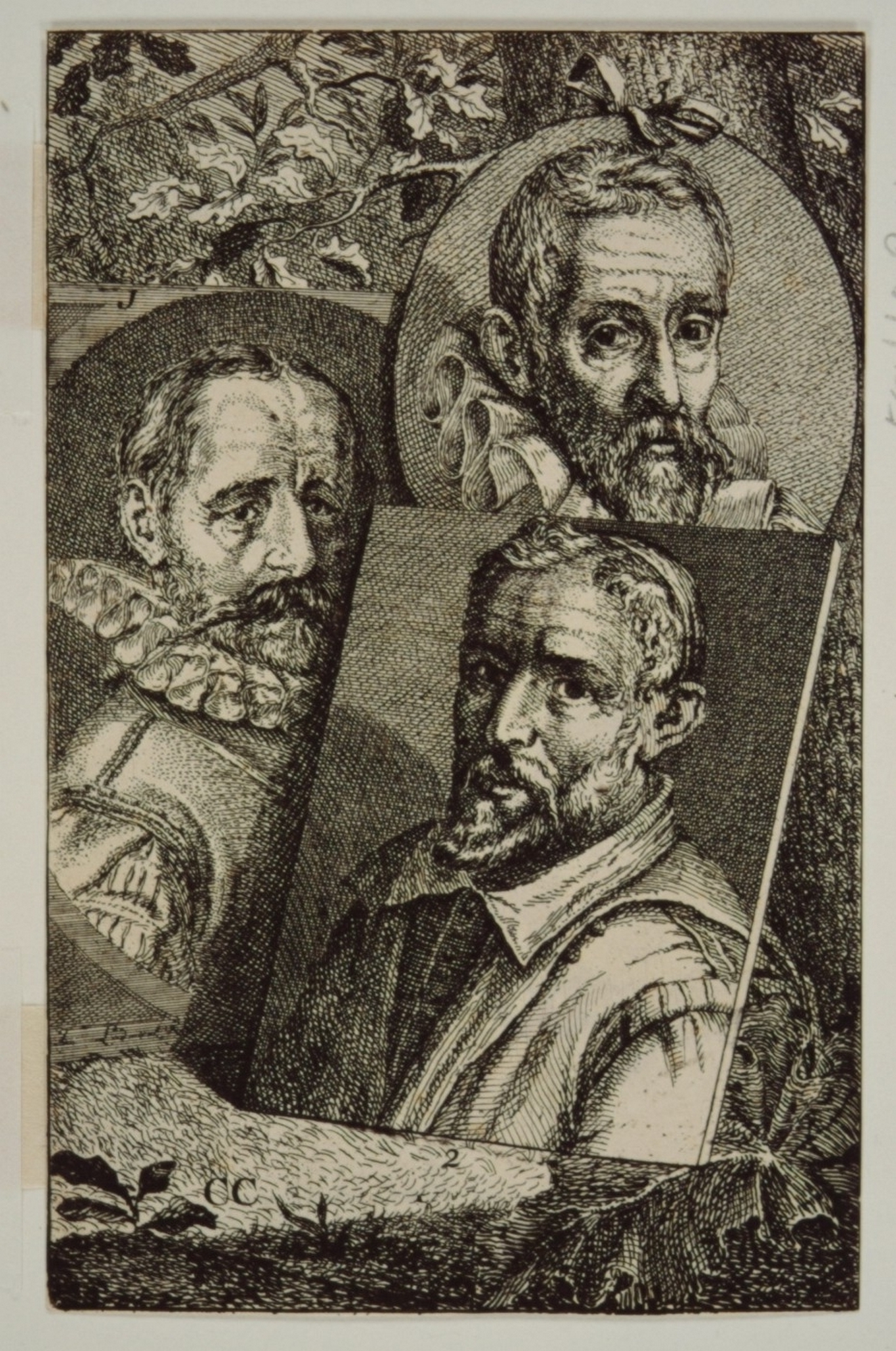 - Portret van Joan of Hans Bol (links) met twee andere kunstenaars