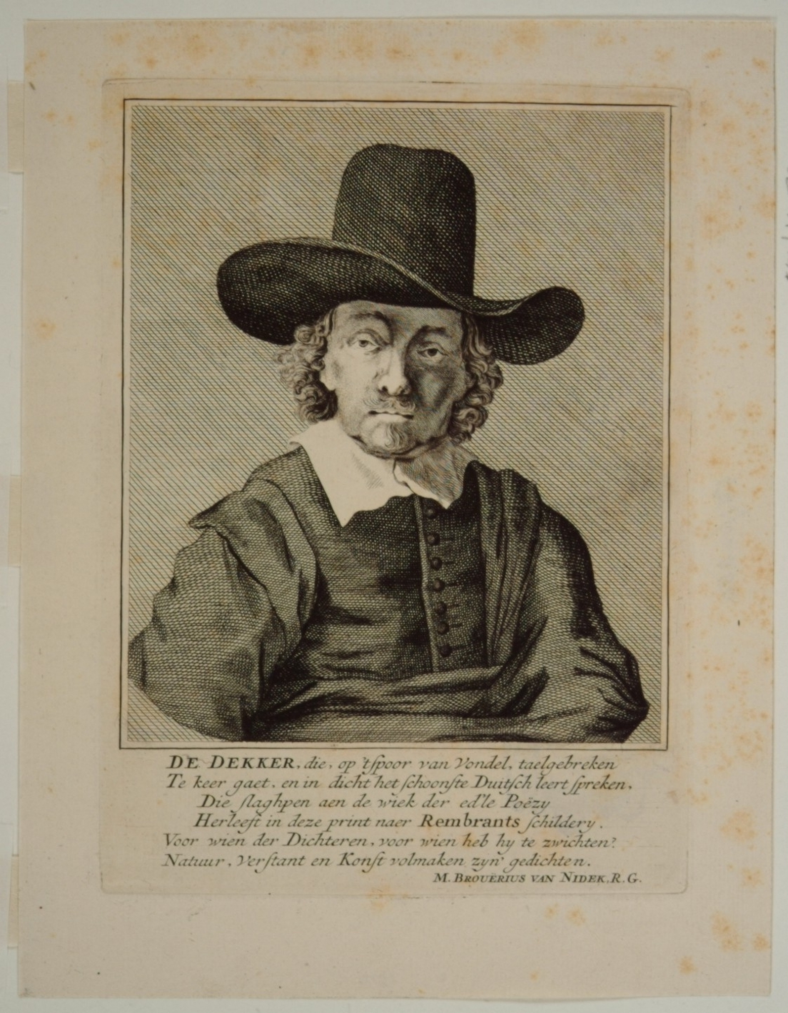 Portret van Jeremias de Dekker met 6-regelig vers van M. Bouërius van Nidek.