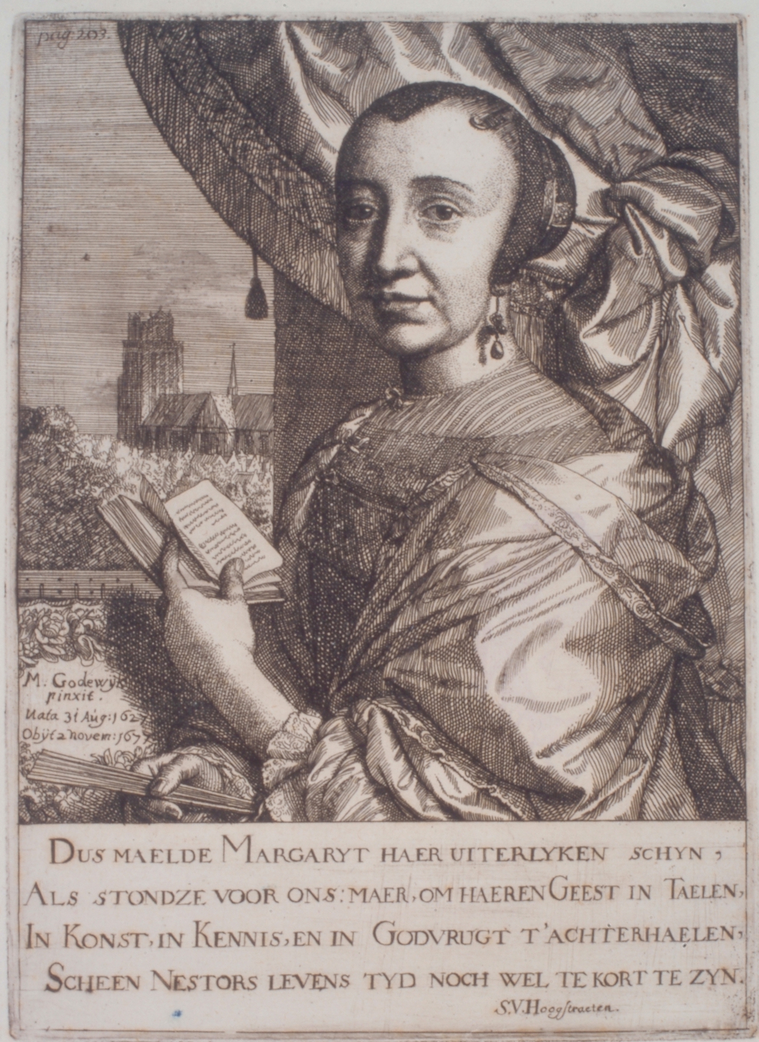 - Portret van Margaretha van Godewijck. Het 4-regelig vers is van S. van Hoogstraten.