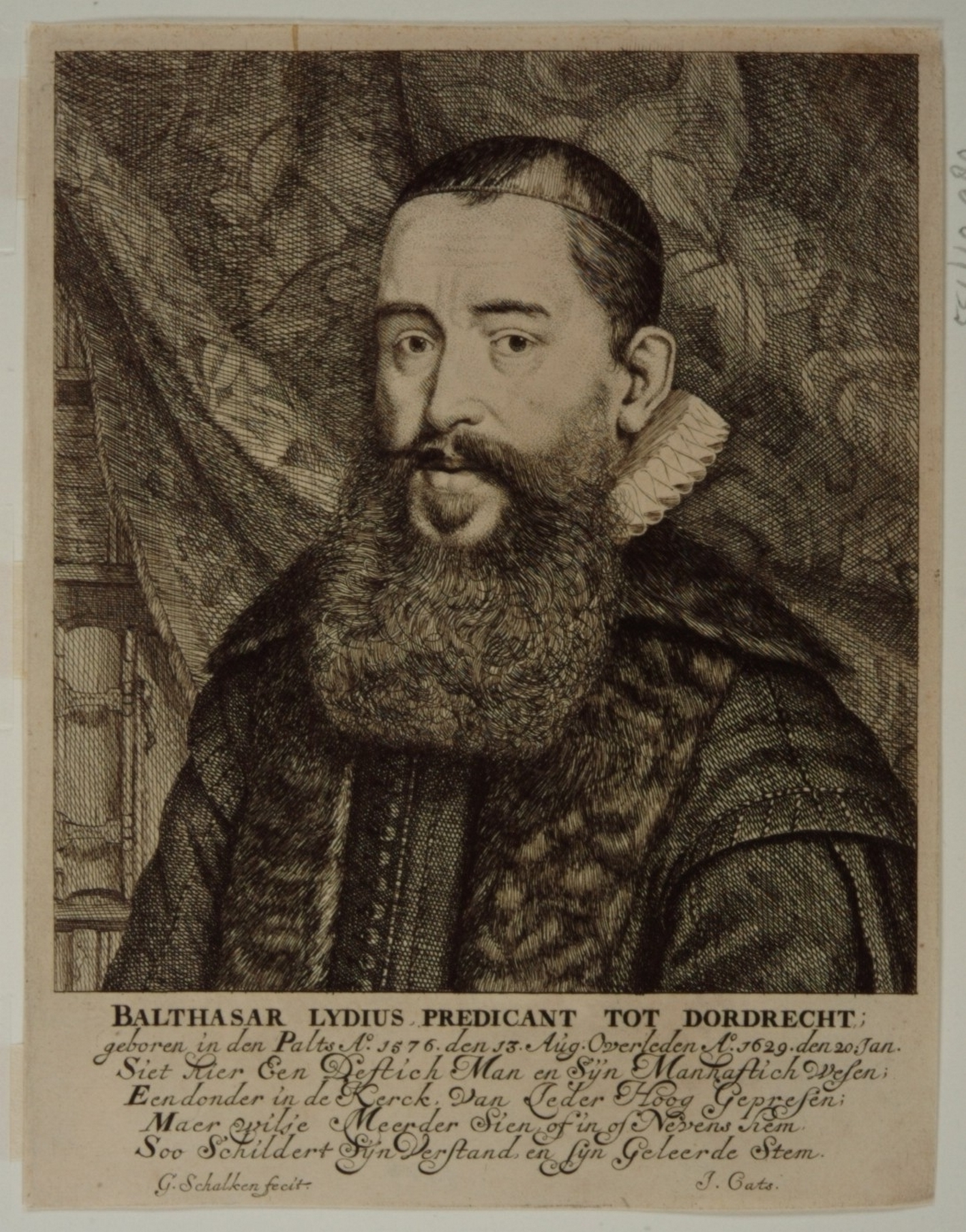 hxb: 20,3 x 15 cm. (v.S. 3375). Geboren in Ulmstad 1577 en overleden te Dordrecht 1629. Hervormd Predikant van Dordrecht 1602-1629 en afgevaardigde op de Dordtse Synode van 1618/1619.