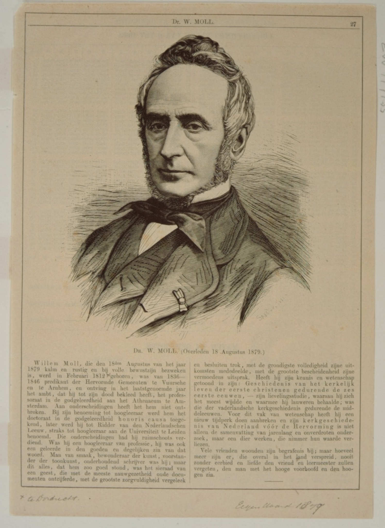 - hxb: 23,4 x 16,5 cm. Uit: Eigen Haard, 1877, p. 333; Dit exemplaar is een latere afdruk met tekst uit: Nederlandse Almanak, 1880. Geboren te Dordrecht 1812 en overleden in Amsterdam 1879. Hervormd predikant aan de Vuursche en Arnhem, daarna hoogleraar kerkgeschiedenis in Amsterdam 1846-1879.
