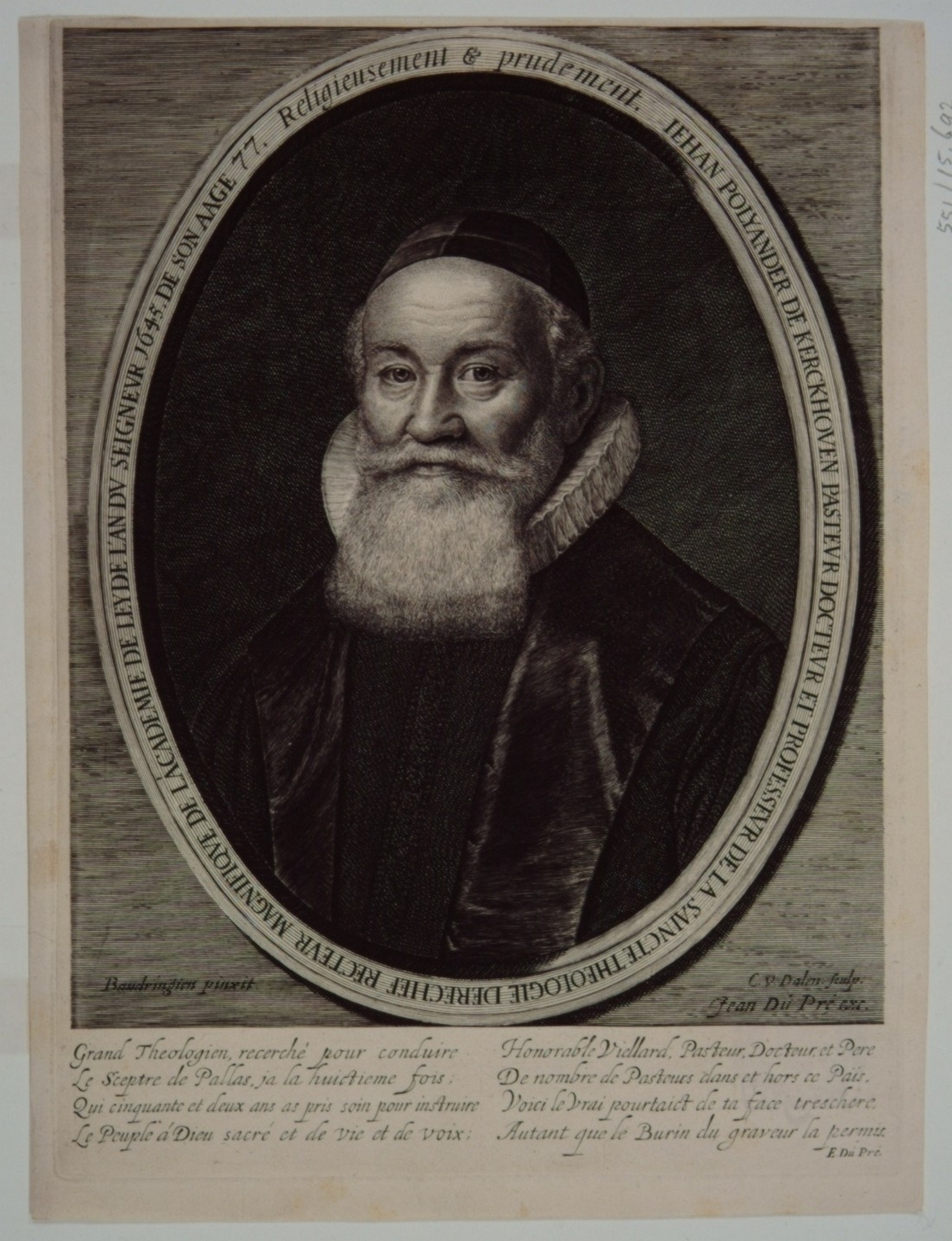 Afmetingen: Hg. 31.6, br. 23 c. Nota Bene: Johannes Polyander a Kerkhoven werd geboren in Metz in 1568 en overleed te Leiden in 1646. Hij was Waals predikant te Dordrecht van 1591 tot 1611, daarna theologisch professor in Leiden en tijdens de Dordtse Synode van 1618/1619 was hij afgevaardigde voor de Leidse hogeschool
