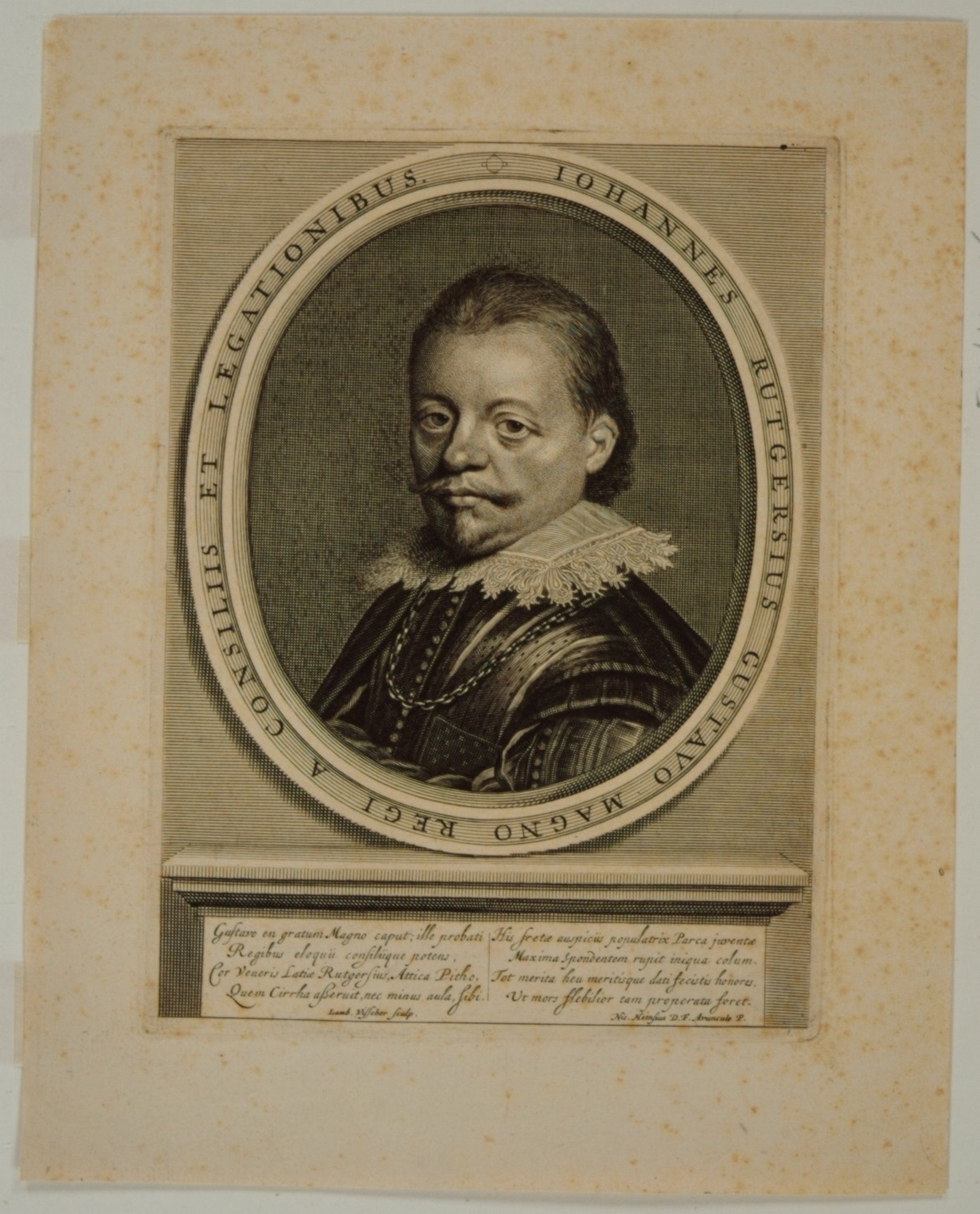 - Portret van Johannes Rutgers met 8-regelig vers van Nic. Heinsius
