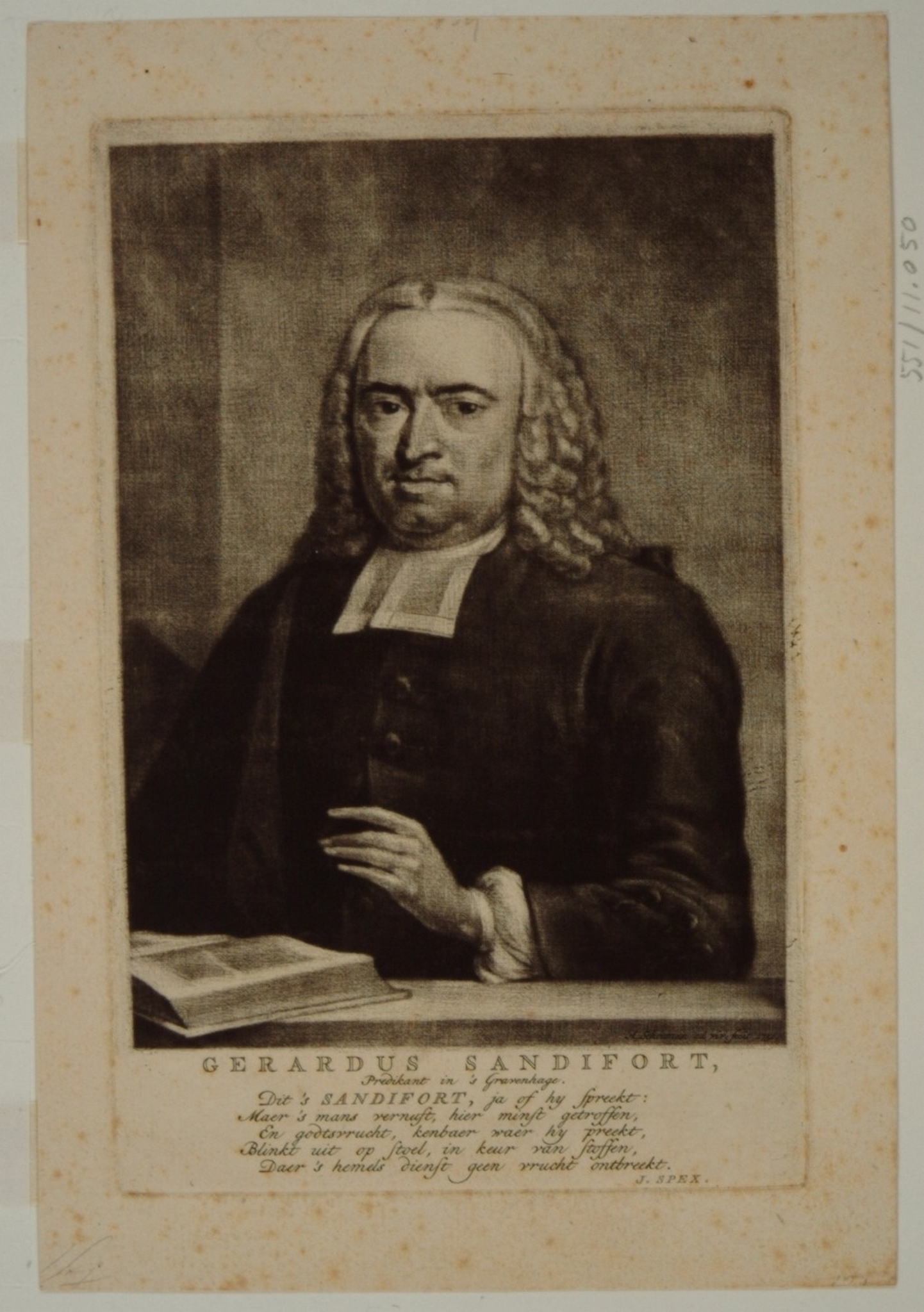 Portret van Gerardus Sandifort, met 5-regelig vers van J. Spex