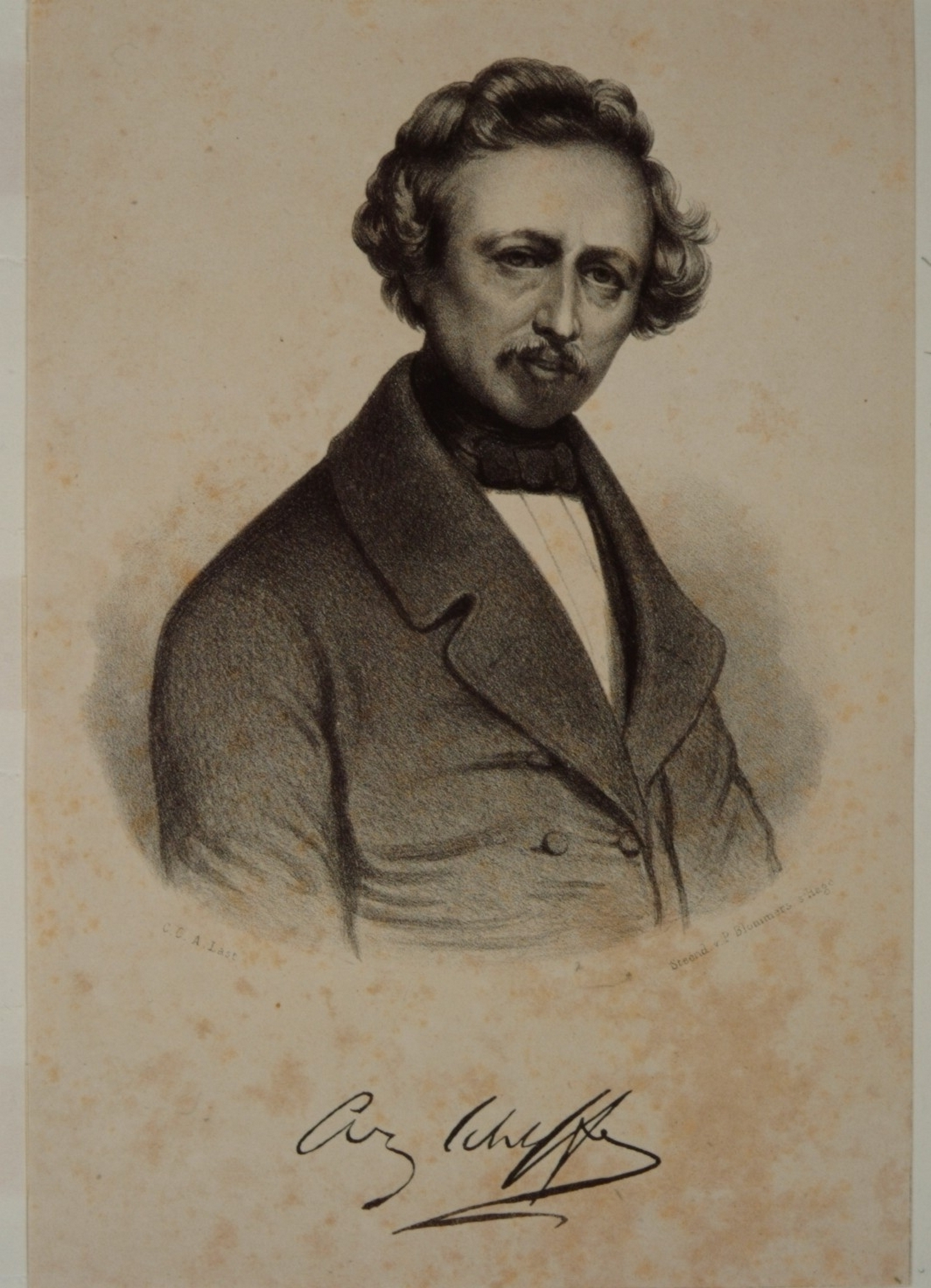 - Portret van Ary Scheffer met facsimile van zijn handtekening