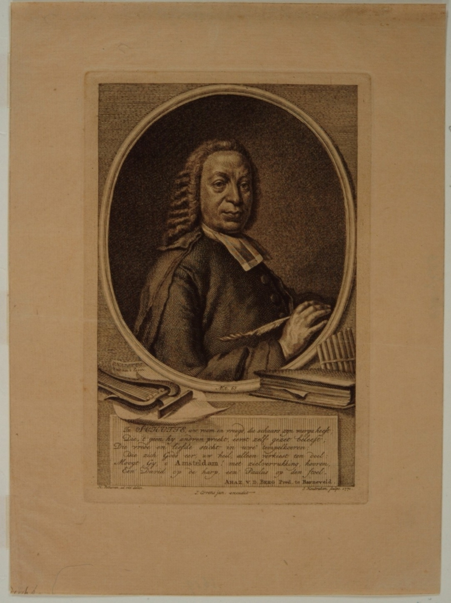 - Portret van Rutger Schutte met 6-regelig vers van A. van de Berg