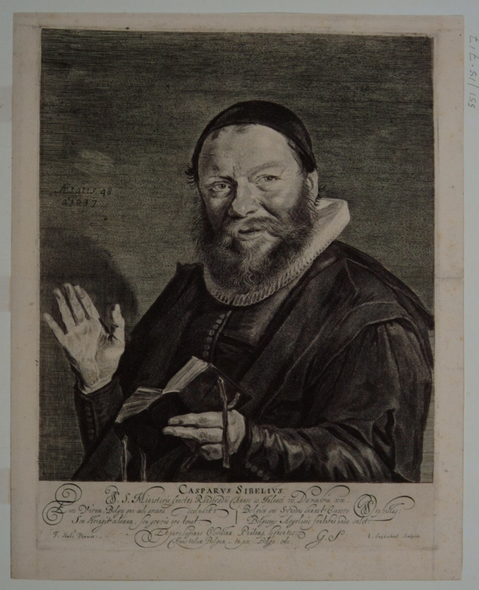 - Gravure naar schilderij van Frans Hals; afmetingen: Hg. 29.7, br. 23 c. (Muller 4925). Nota Bene: Caspar Sibelius, geboren te Elberfeld in 1590, overleden te Deventer in 1658, was Hervormd predikant te Deventer en afgevaardigde op de Dordtse Synode 1618/19 namens Overijssel.