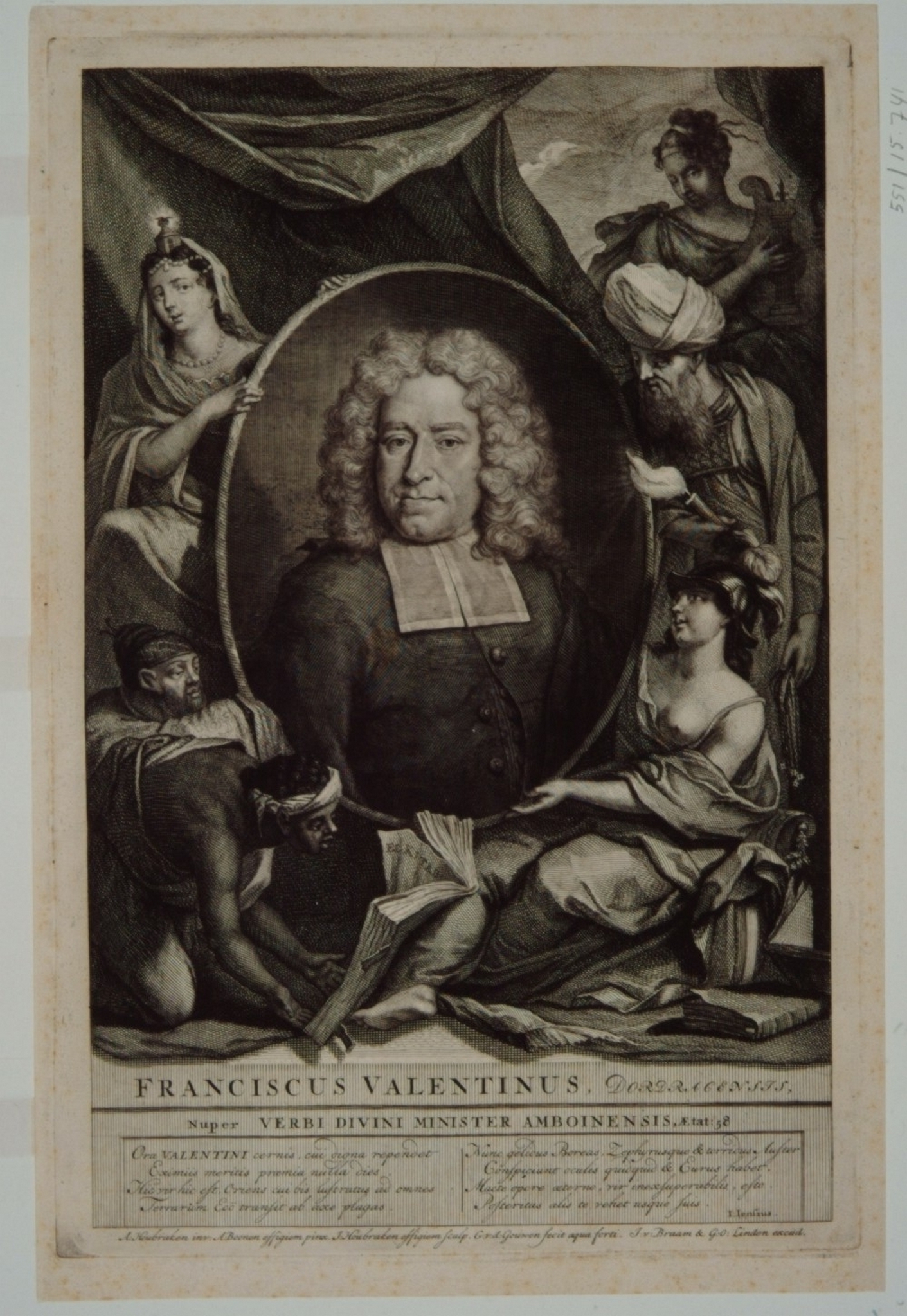 - Gravure naar schilderij van A. Boonen; afmetingen: Hg. 37.3, br. 25.5 c. (Muller 5564). Nota Bene: François Valentijn (Dordrecht 1656 - Den Haag 1727) was Hervormd predikant in dienst van de VOC op Ambon 1686-1693 en 1707-1712 en schrijver van het standaardwerk Oud en Nieuw Oost-Indiën.