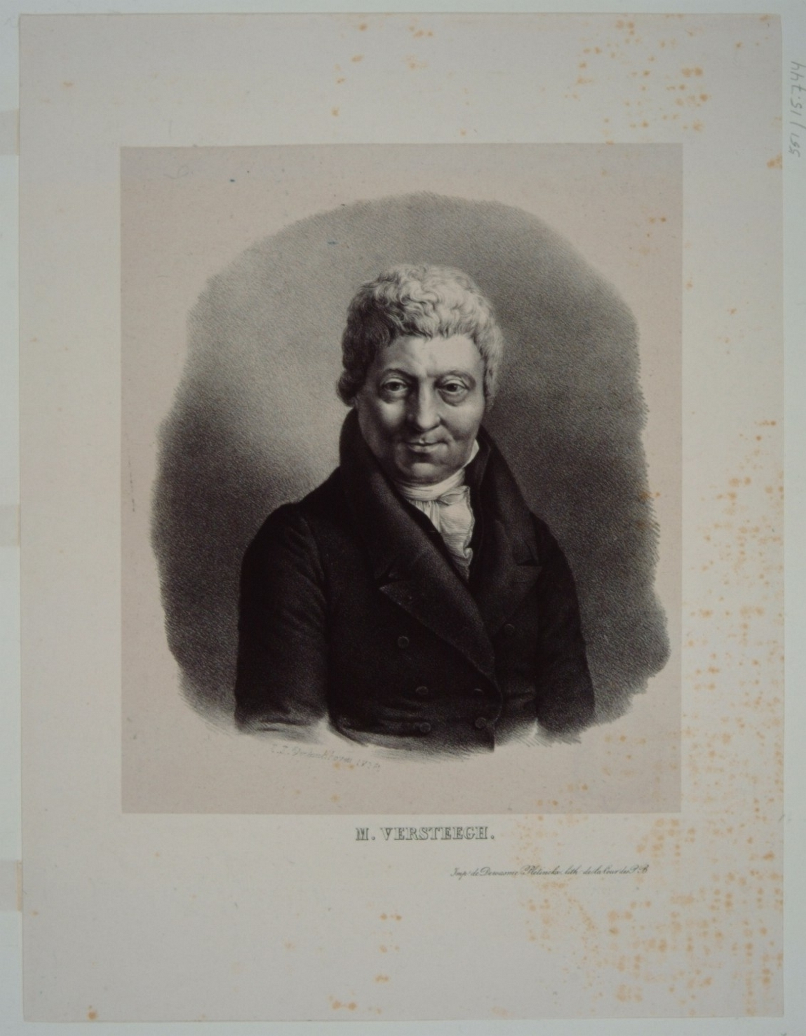 - Afmetingen: Hg. 27.3, br. 23 c.; de bijbehorende biografie uit: Galerie des peintres des écoles Flamandais et Hollandais (Brussel-Rotterdam 1846) is niet gereproduceerd. Nota Bene: De kunstschilder Michiel Versteeg werd geboren te Dordrecht in 1756 en overleed aldaar in 1843.