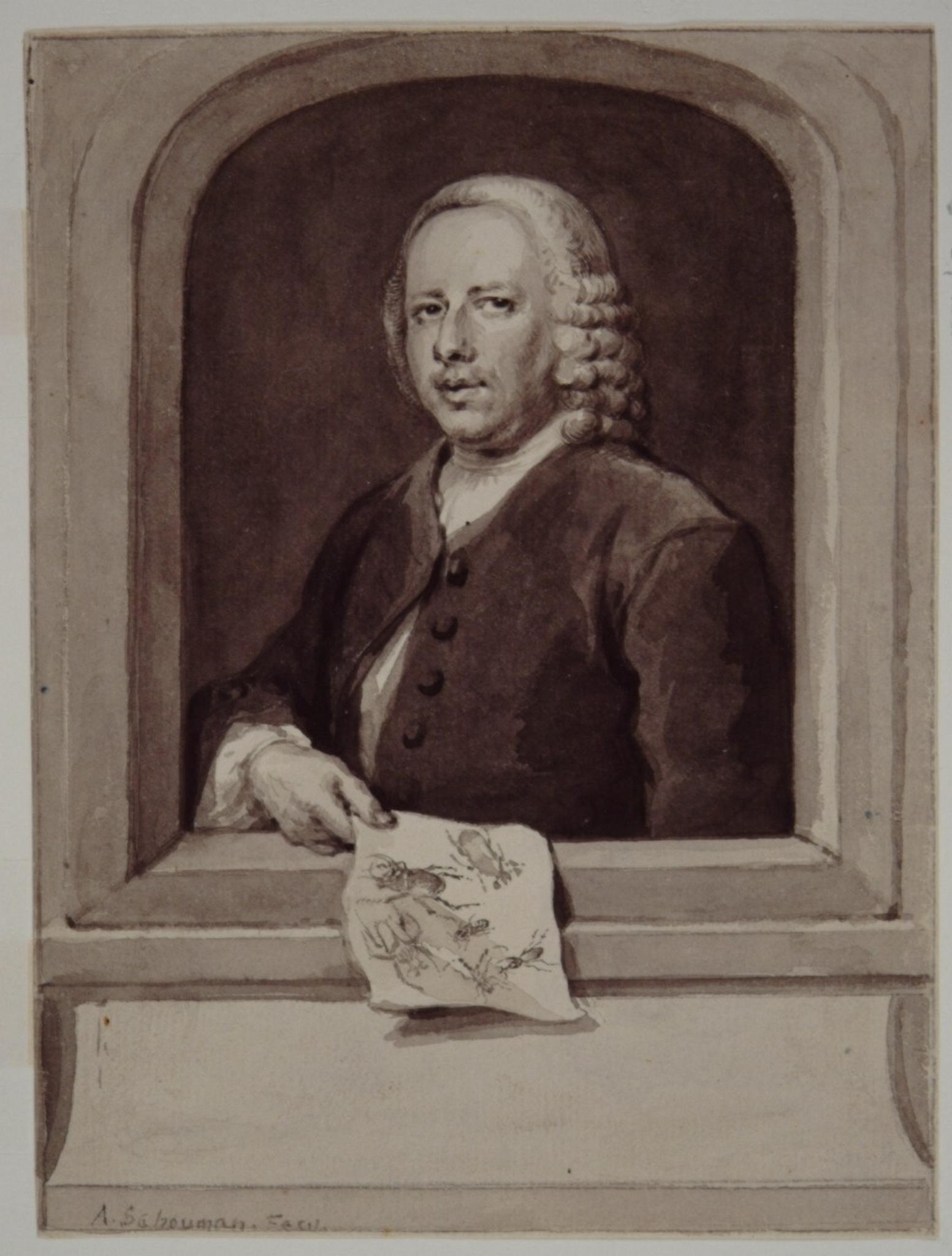- Portret van Johannes Eusebius met in zijn rechterhand een vel papier waarop torren zijn getekend