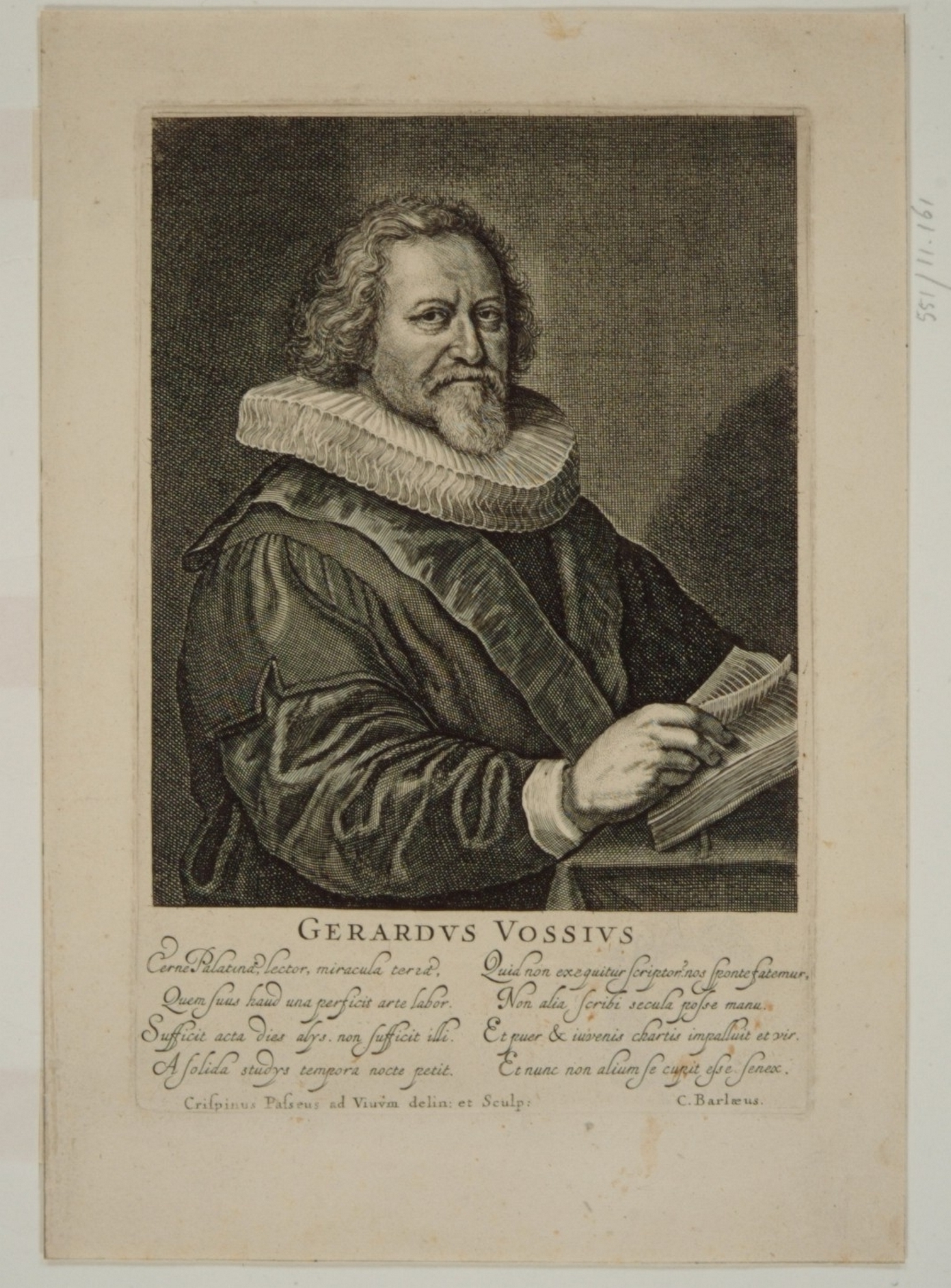 Portret van Gerardus Johannes Vossius met vers van Barlaeus